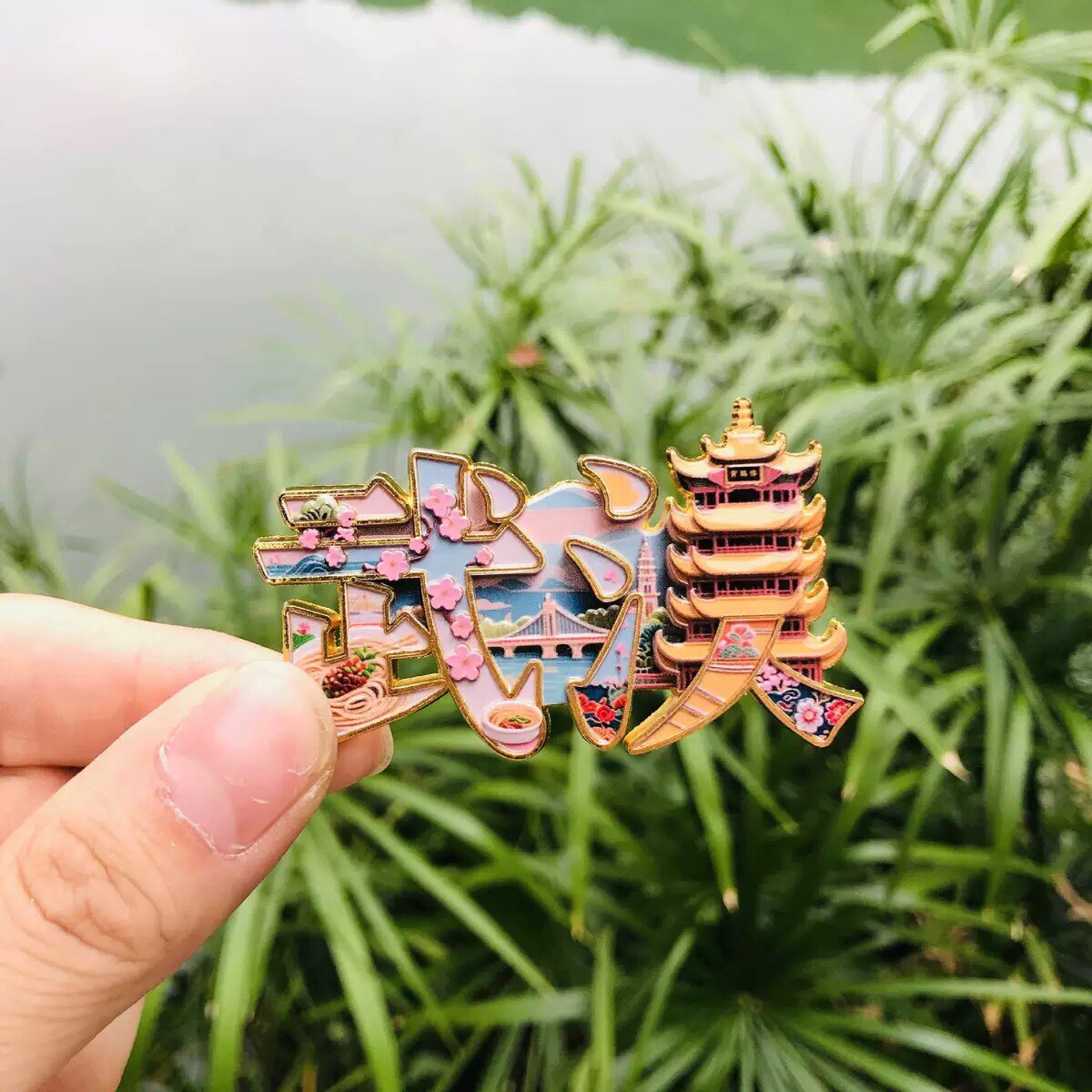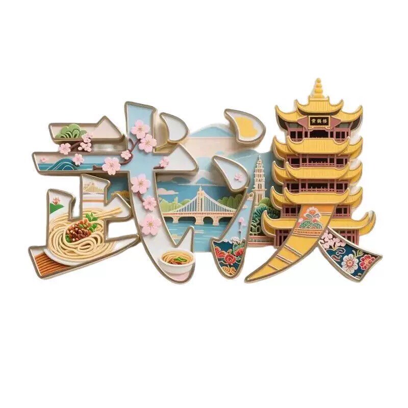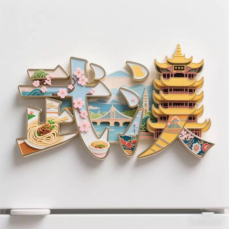 📚 武汉字体冰箱贴金属磁贴2025新款黄鹤楼热干面文创冰箱贴伴手礼