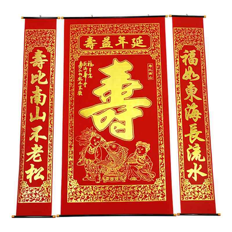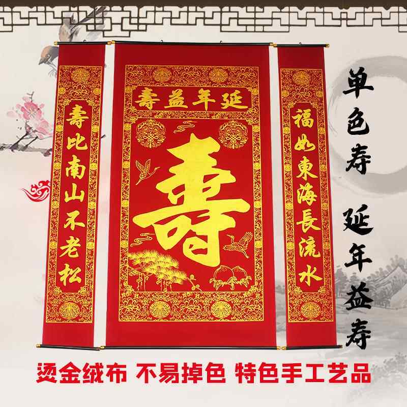 📚 老人生日祝寿对联绒布烫金寿字中堂画贺寿对联寿联寿寿宴卷轴挂画