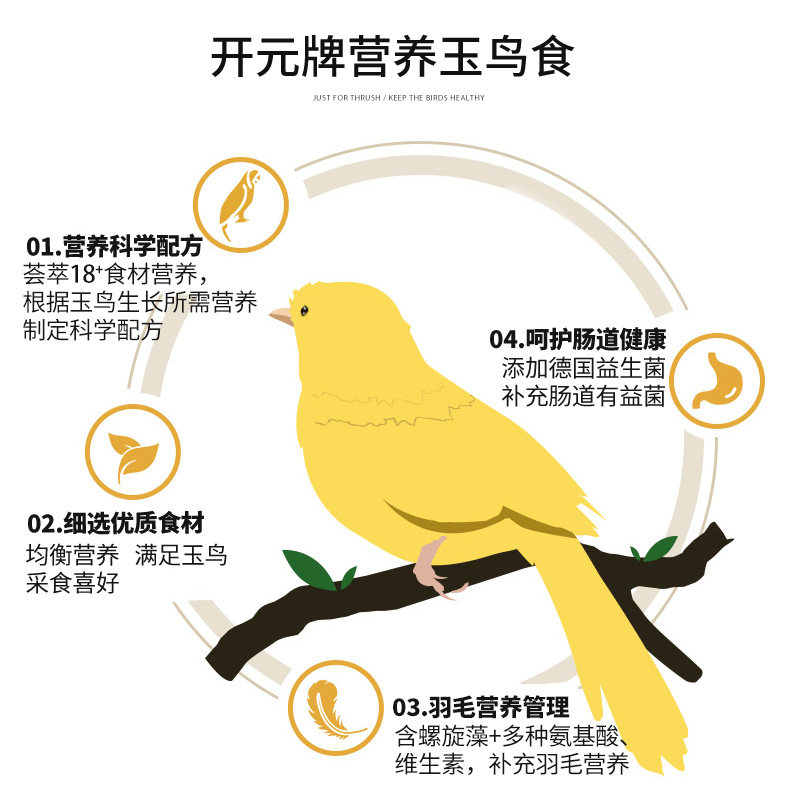 📚 开元牌营养玉鸟专用鸟食饲料小鹦鹉文鸟黄雀鸟粮鸟料混合带壳谷子