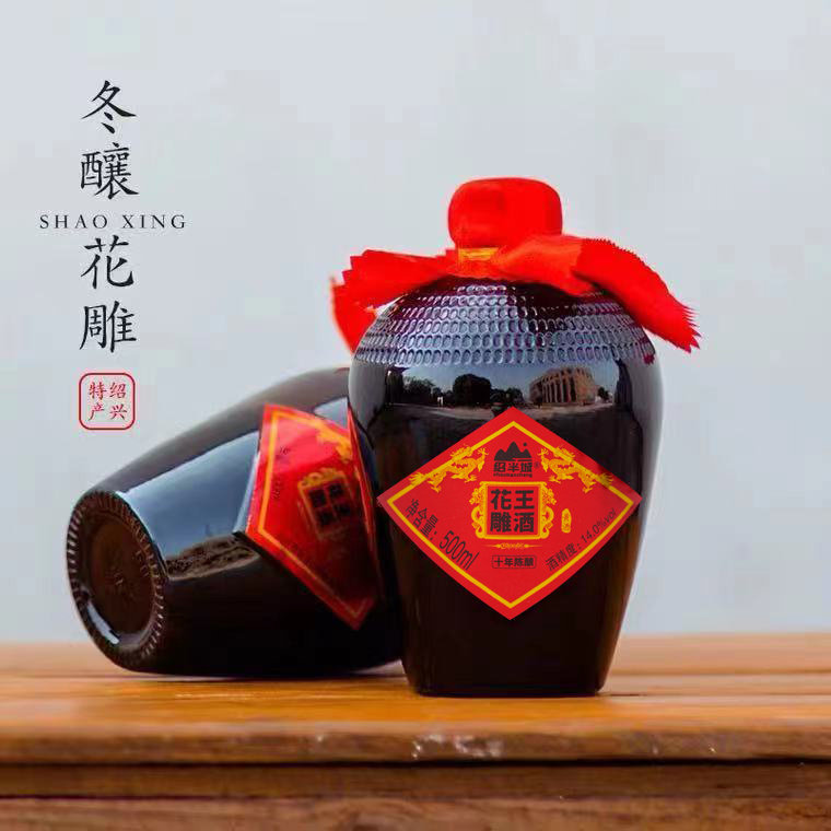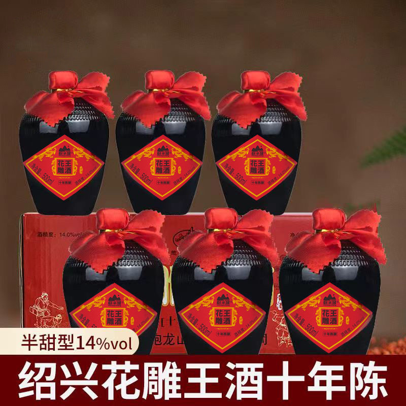 📚 绍半城花雕王十年陈酿糯米黄酒500ml*6瓶整箱装