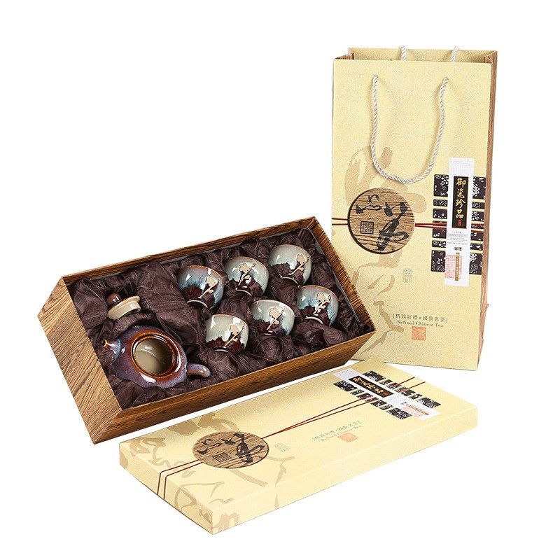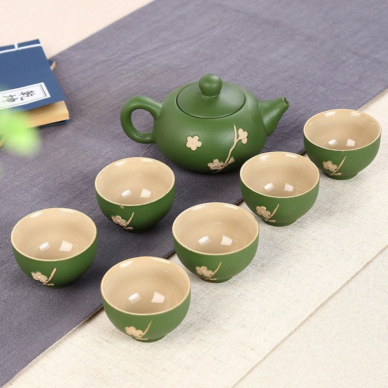 📚 联纵新款梅花黑陶茶具 创意粗陶礼品整套陶瓷茶具LOGO