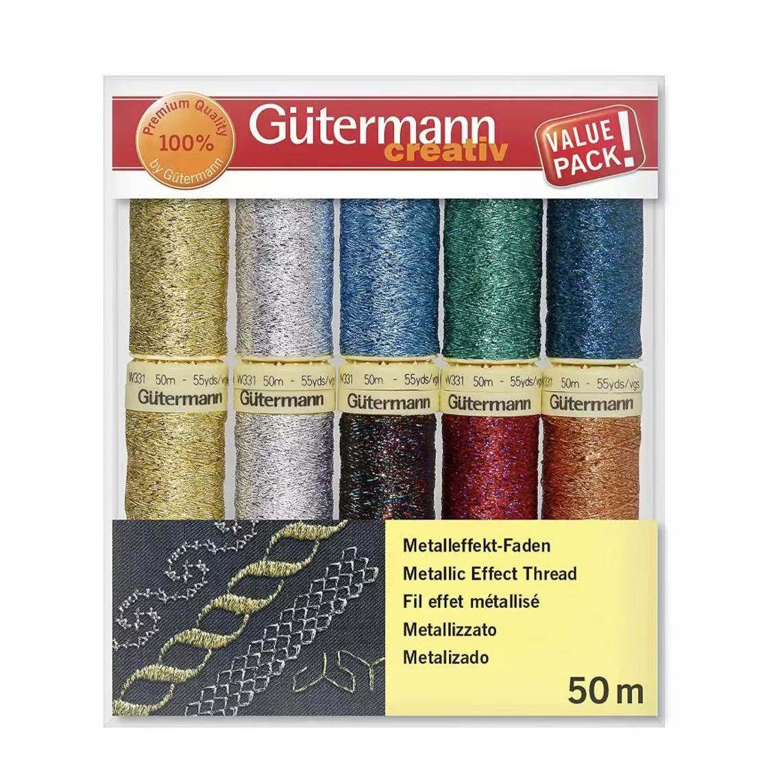 📚 古特曼Gutermann闪金线 法式刺绣梭编12色金属金葱线刺绣缝纫50米