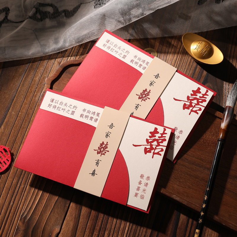 这款结婚请柬采用了高级感的定制设计,简约却不失精致,就像是一件艺术品一样。🎨🎨 它的色彩搭配恰到好处,让人一看就心动。无论是放在家中还是作为婚礼现场的装饰,都能展现出独特的魅力。而且,这款请柬的印刷质量也非常出色,字迹清晰,不易褪色。