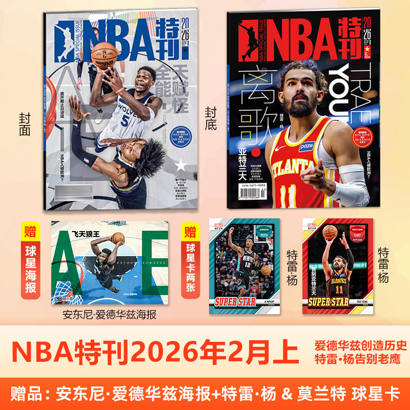 📚 NBA特刊杂志2026年2月下 科比81分20周年纪念,期待杨瀚森亮相全明星 1月上下/2025年1-10/11/12月上下/必杀技20辑 赠海报+球星卡