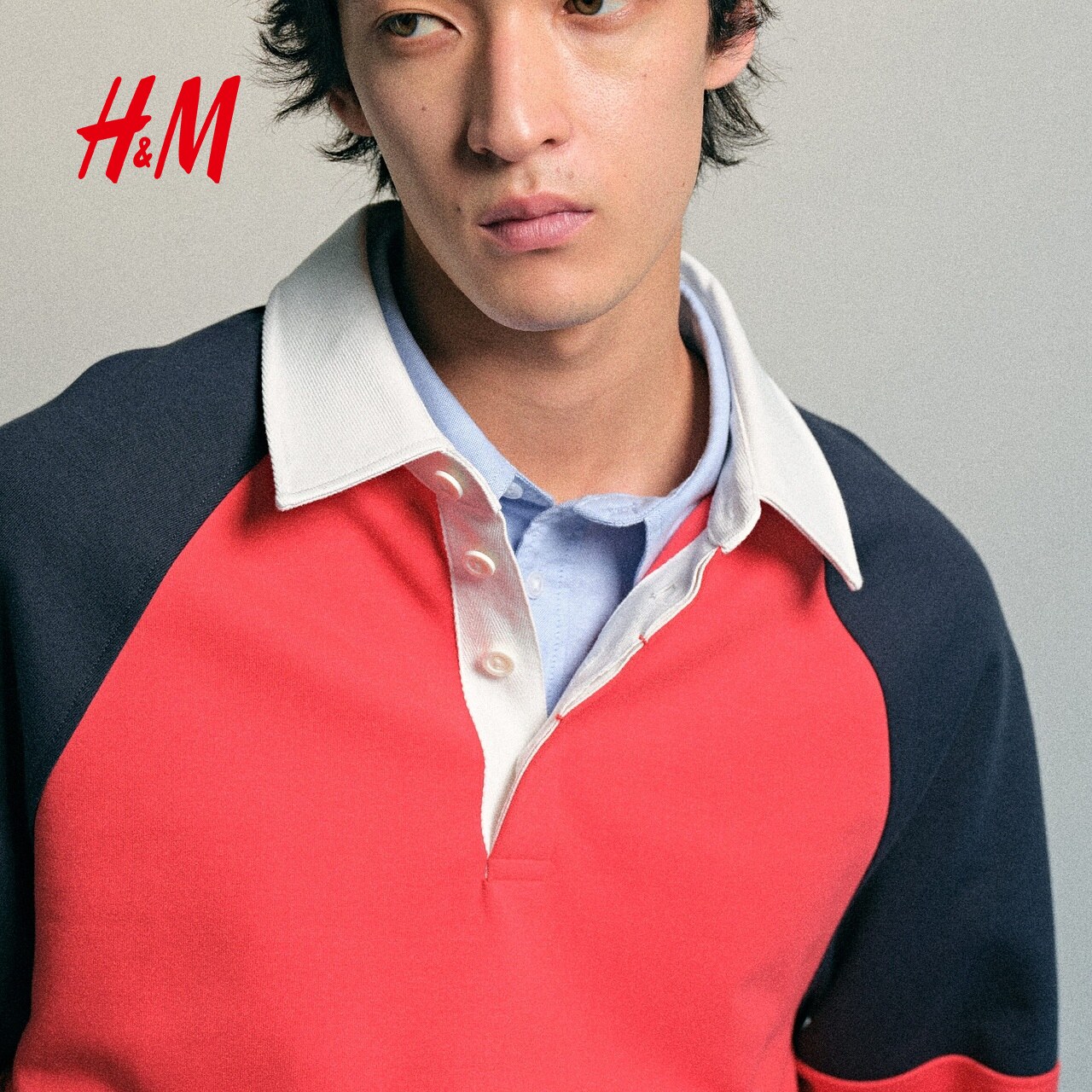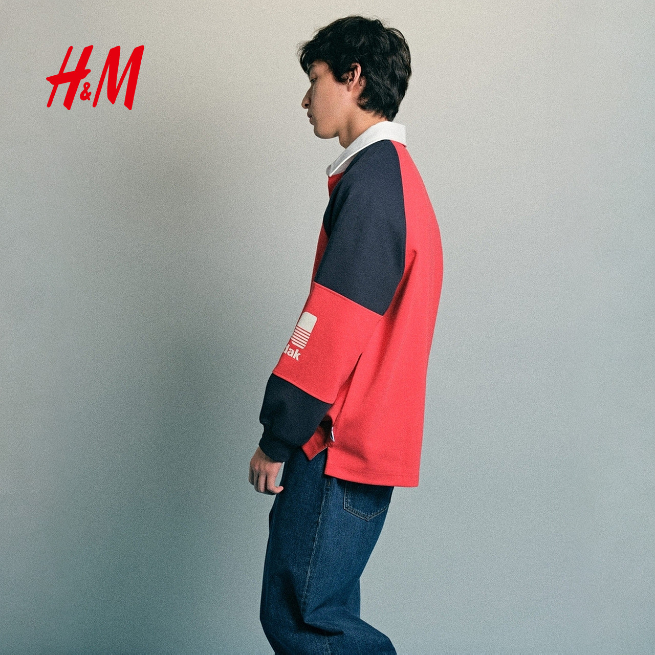 📚 【柯达】HM男装卫衣春季时尚宽松版型橄榄球衫1315413