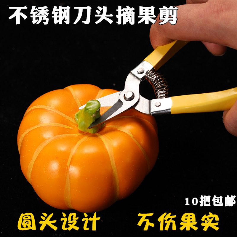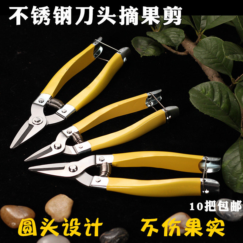 📚 罗定不锈钢果剪剪新款柑桔中号果剪刀圆头柑橘采果剪剪刀摘果