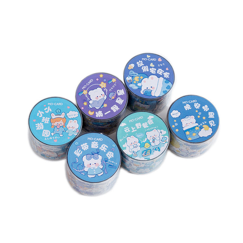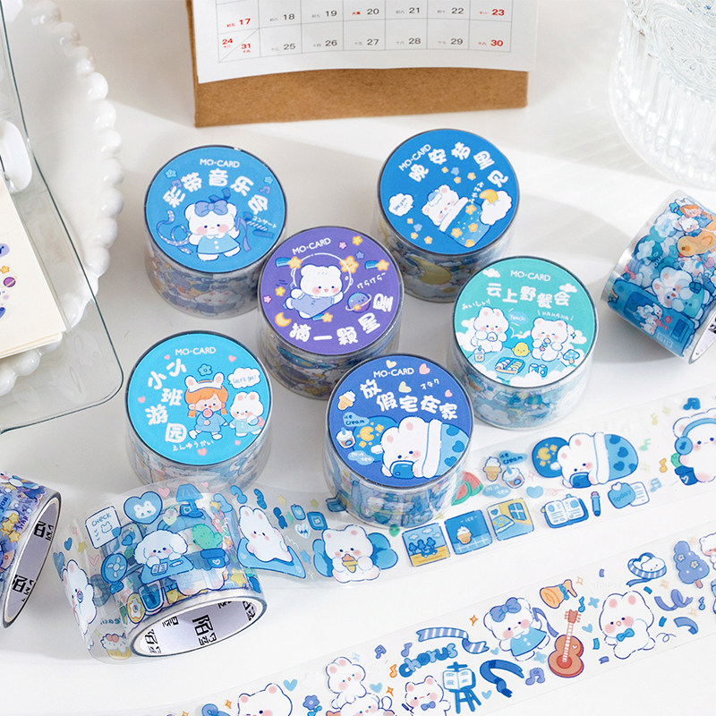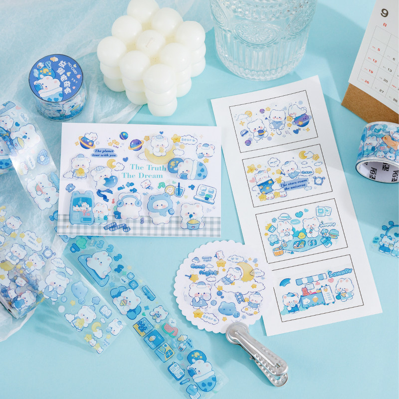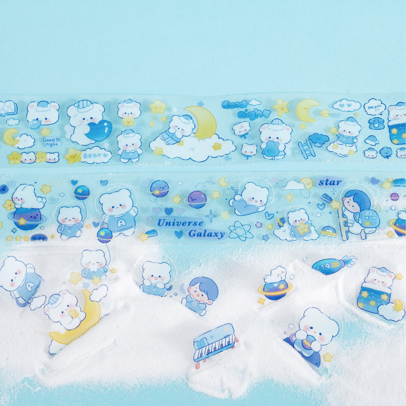 📚 手帐胶带可爱动物ins风日系卡通小熊PET白墨手账拼贴装饰防水胶卷
