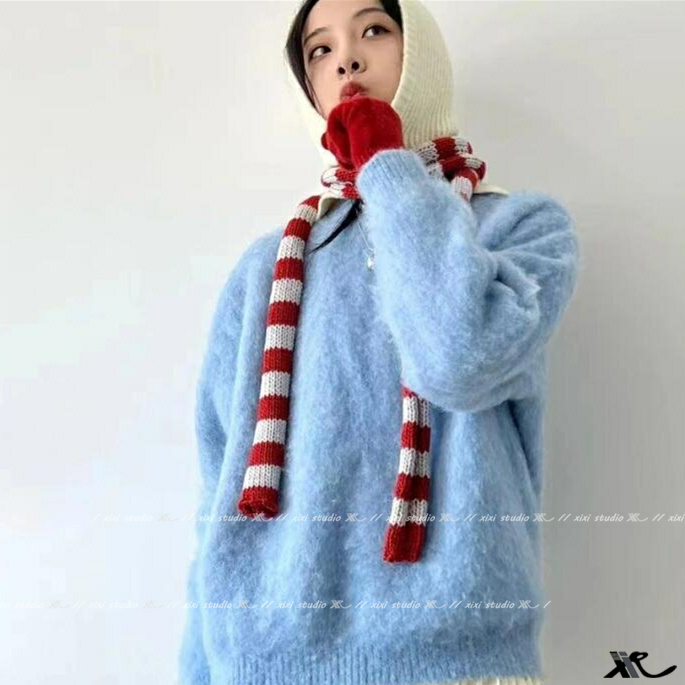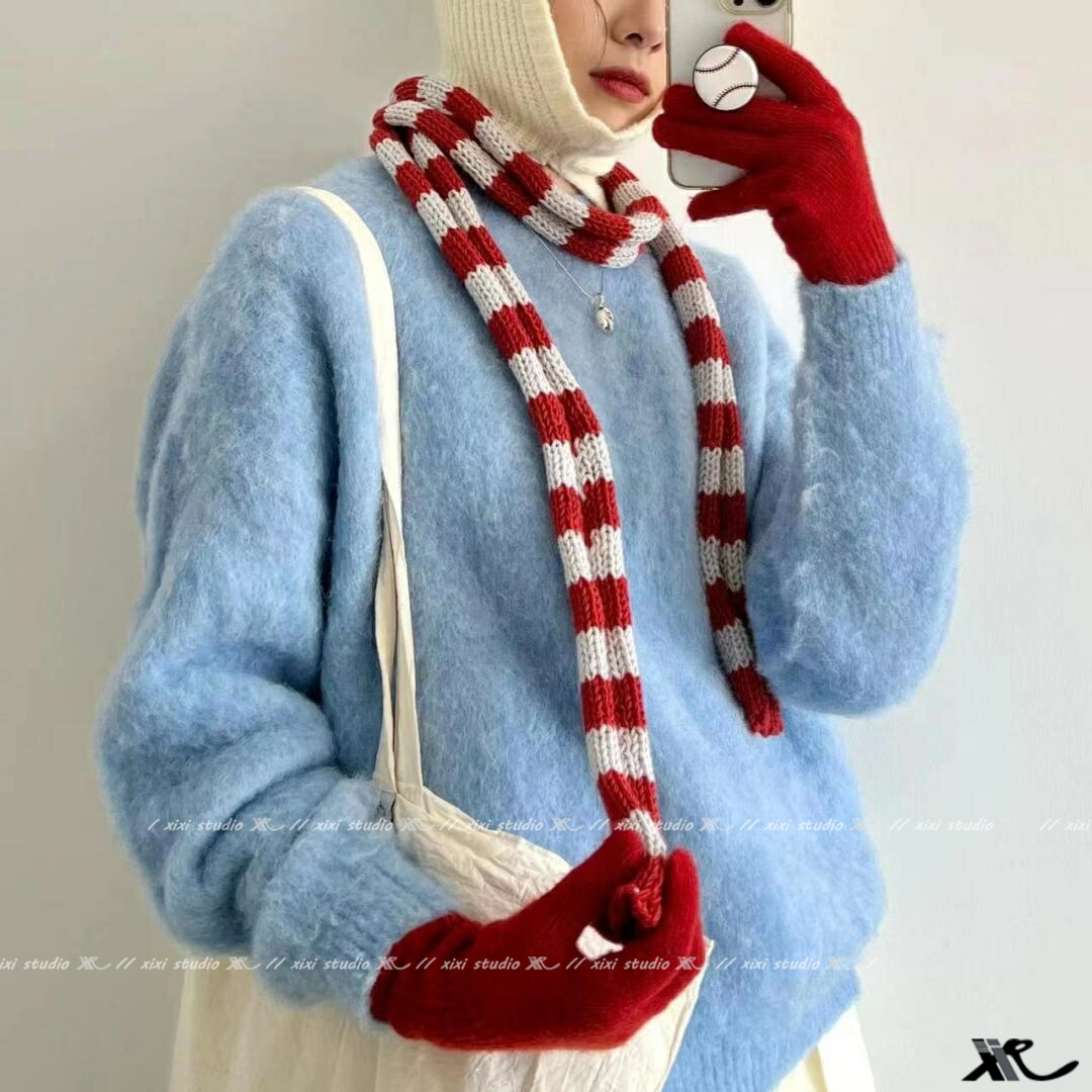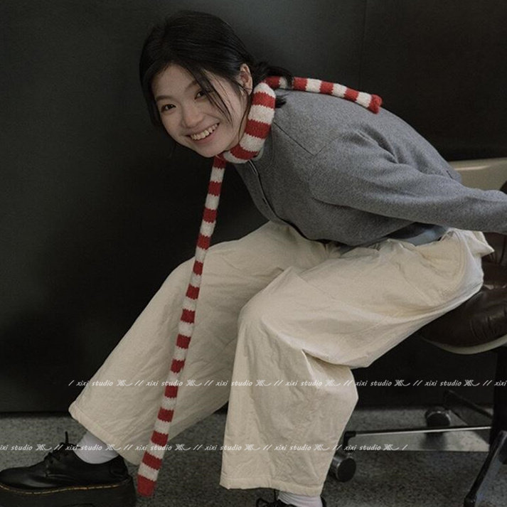 📚 ins风韩系氛围感细长小围巾红白色条纹毛线围脖2026年时尚配饰女