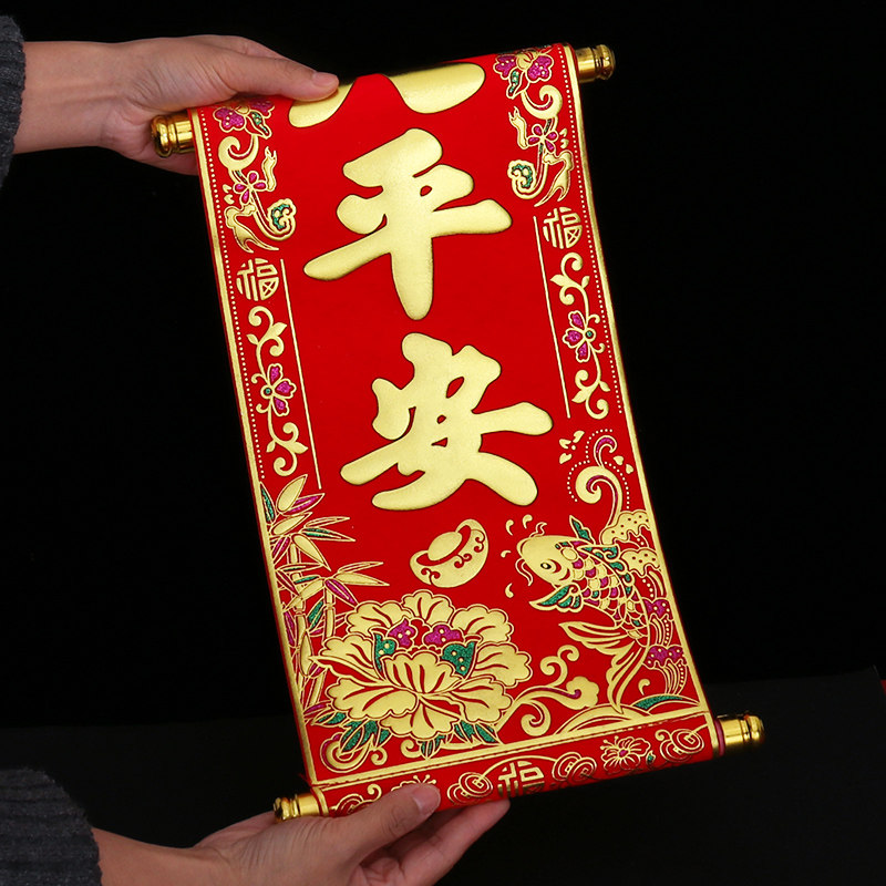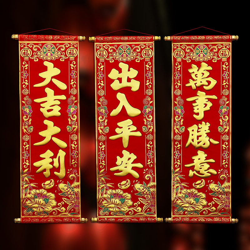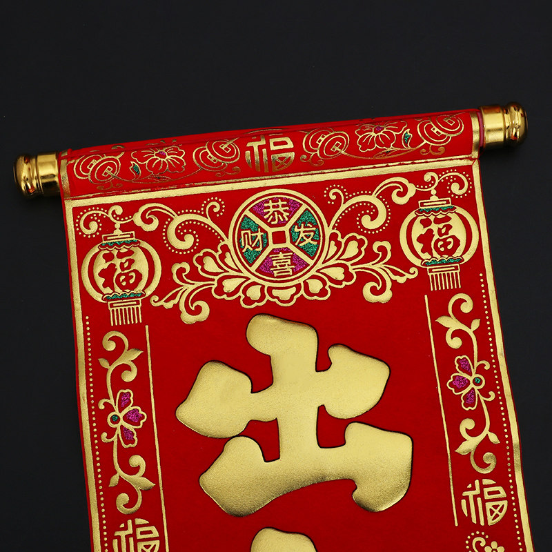 📚 2026新年春节绒布手持挥春生意兴隆对联珲春四字卷轴挂联表演道具