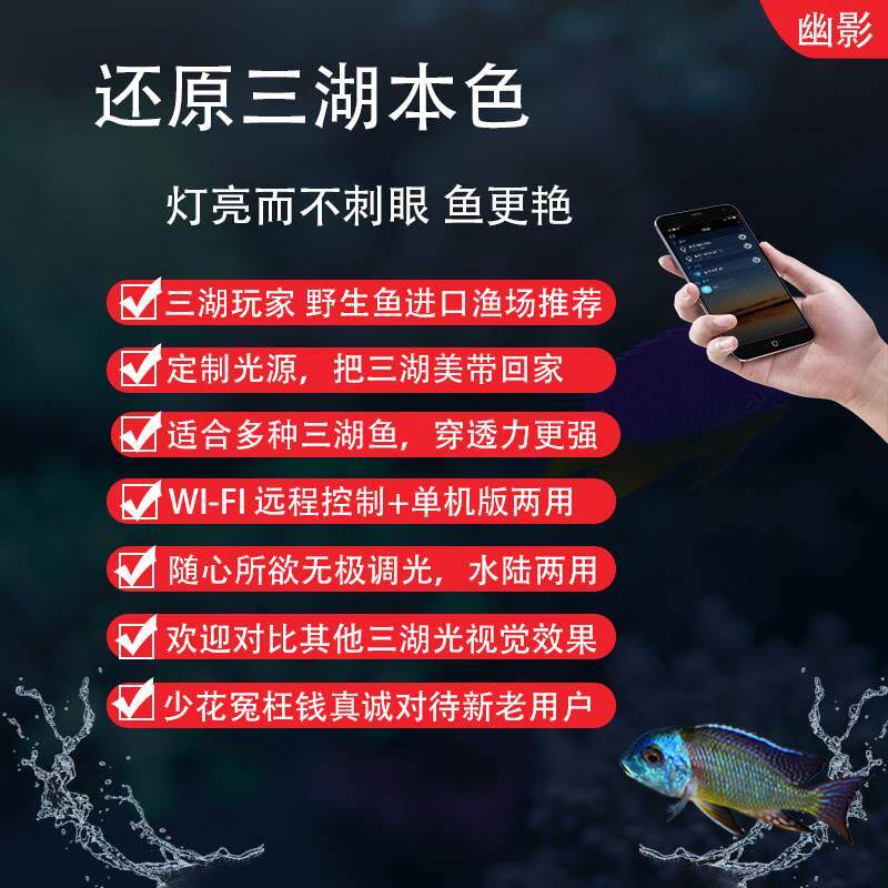📚 幽影三湖灯三湖慈鲷专用灯萨伊蓝白增艳引色鱼缸灯LED灯防水神灯