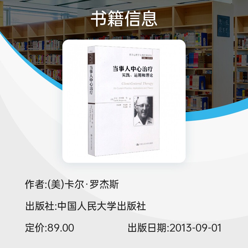 📚 当事人中心治疗(实践运用和理论)/西方心理学大师经典译丛 (美)卡尔·罗杰斯 中国人民大学出版社 正版书籍 博库网