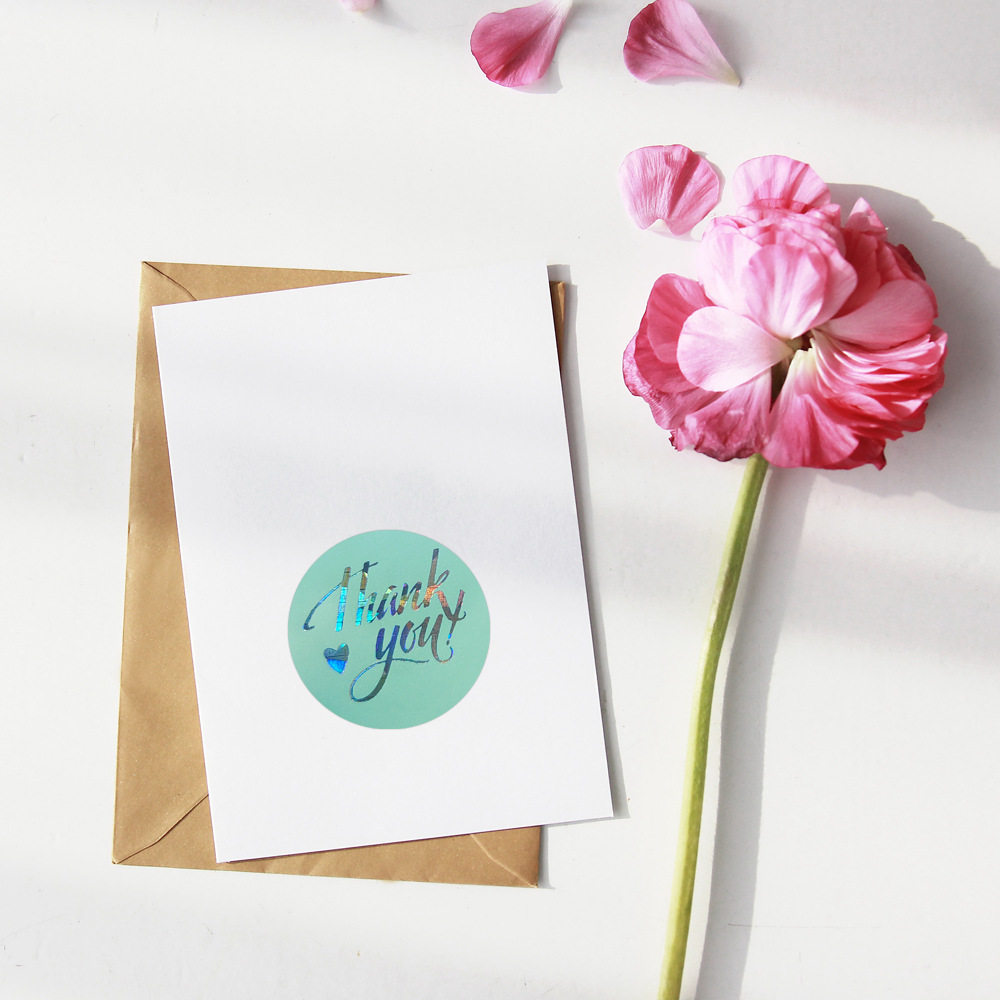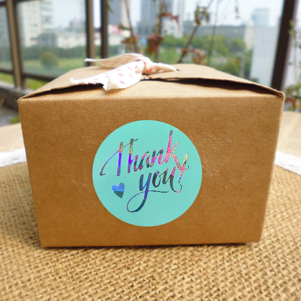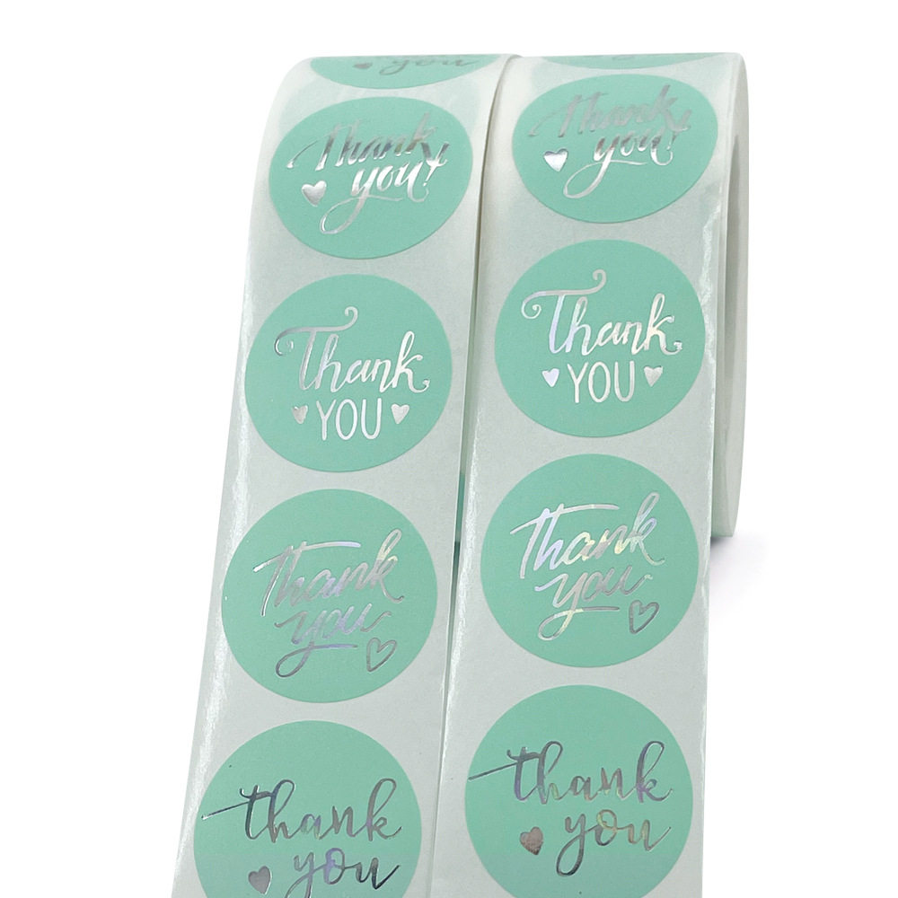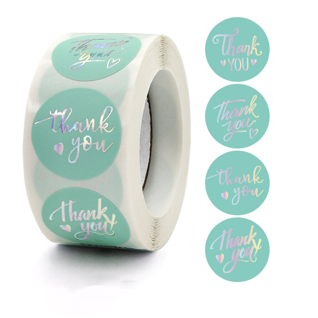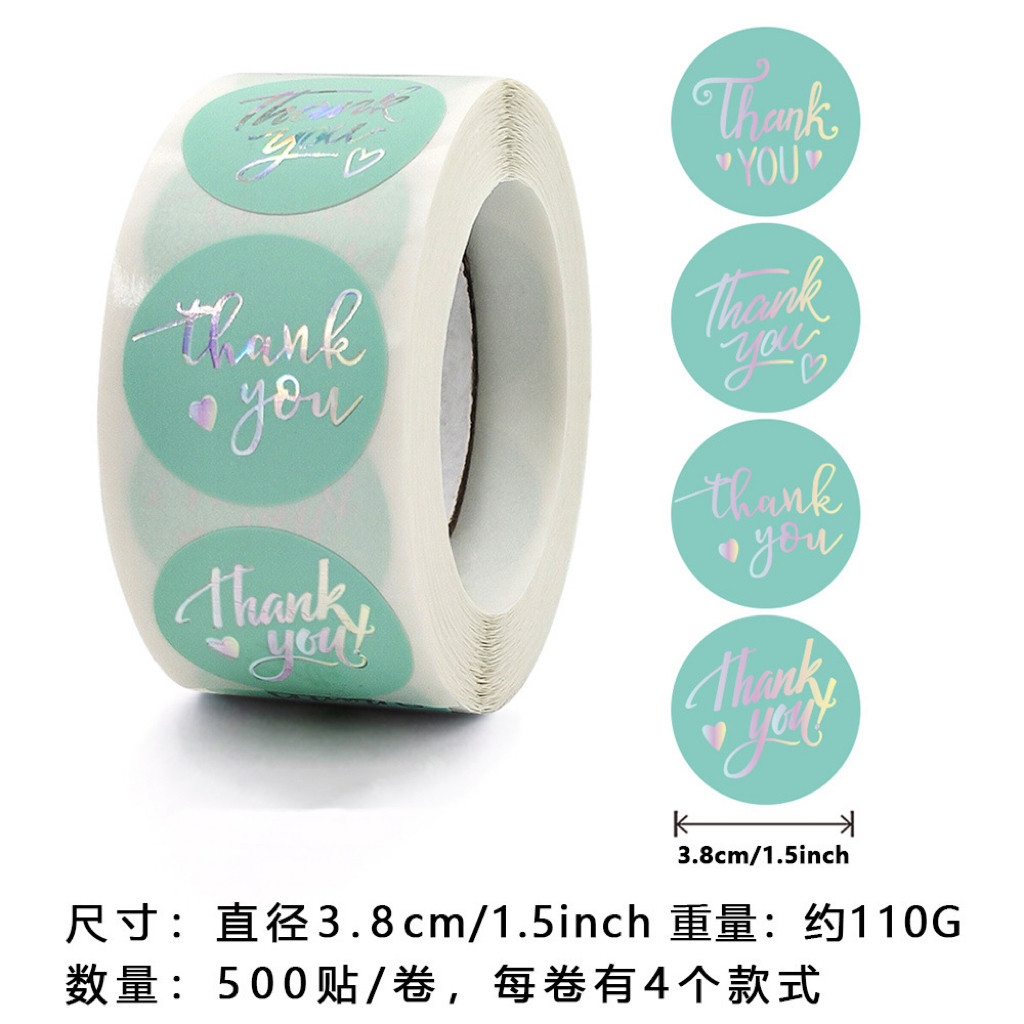 📚 500贴/卷烫碎玻璃银Thank you谢谢不干胶贴纸烘焙礼物装饰标签