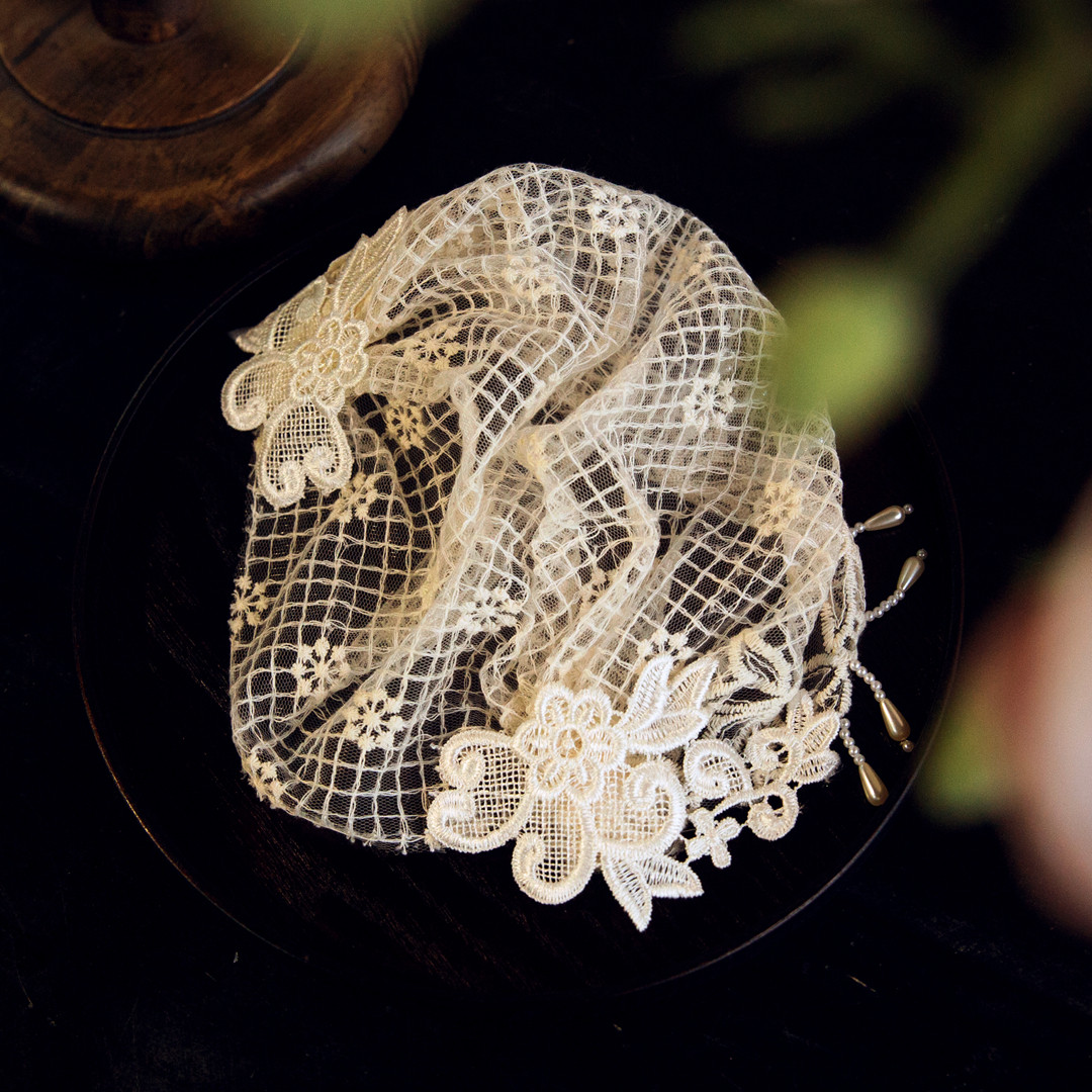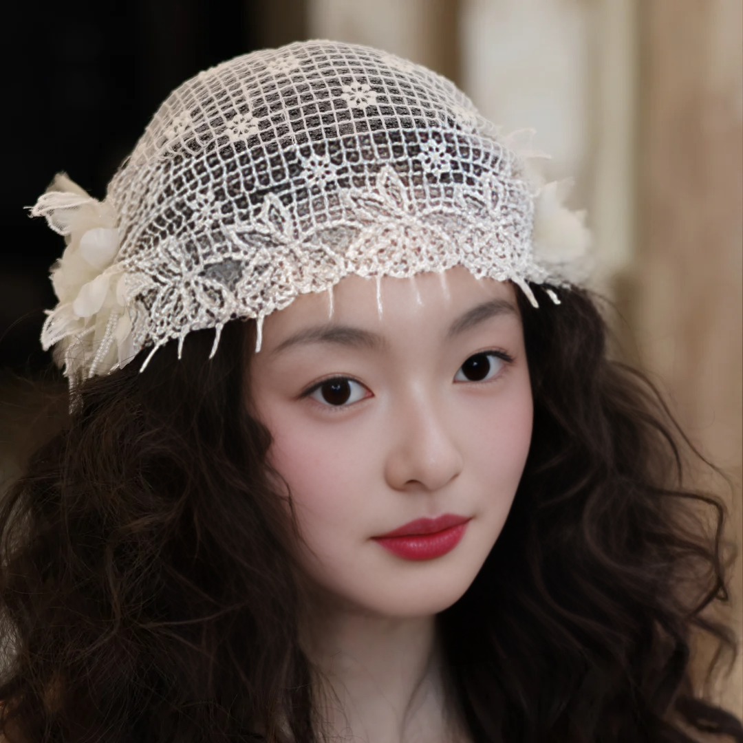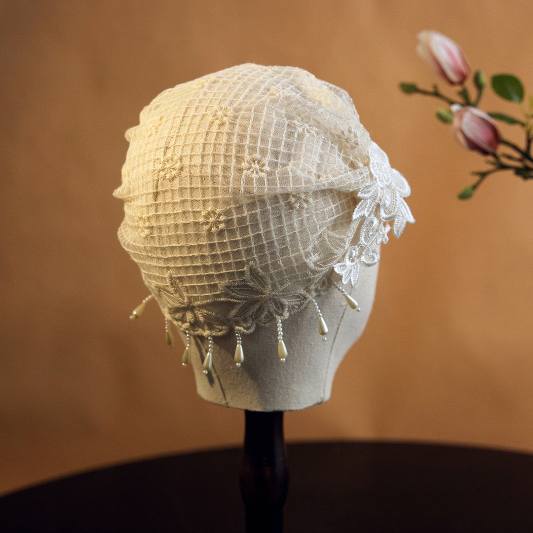 📚 水舞B3066 手作法式复古串珠礼帽新娘头饰结婚小众网帽婚纱配饰