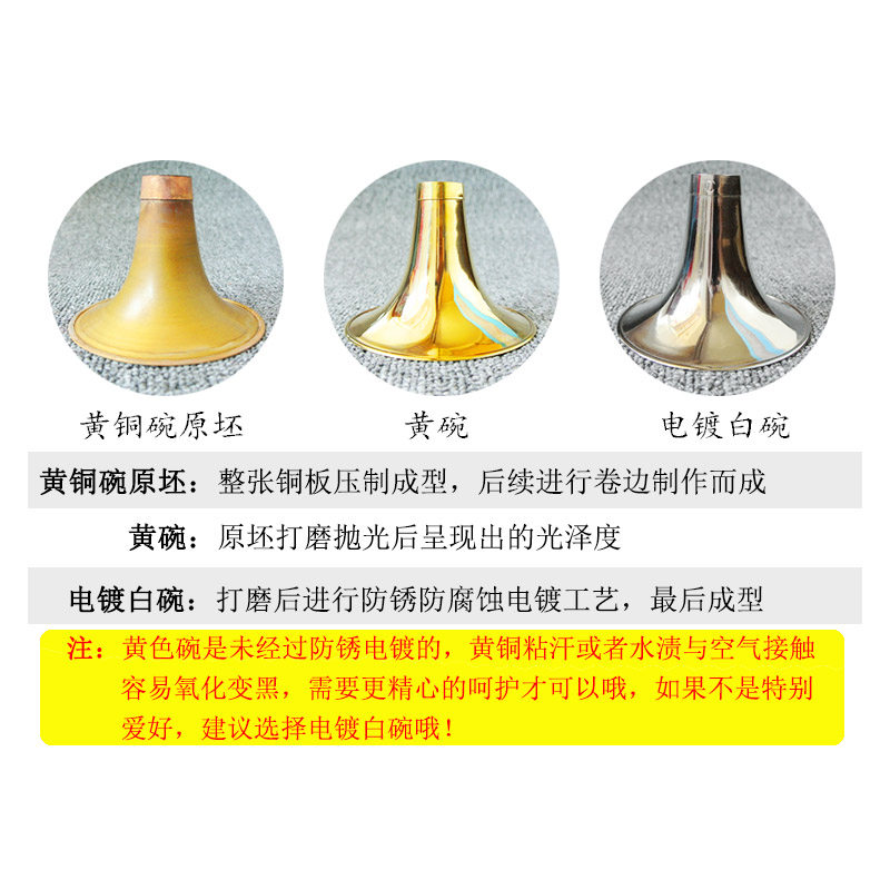 📚 唢呐乐器专业黄铜唢呐碗电镀白色唢呐碗专业尺寸定音标准唢呐配件