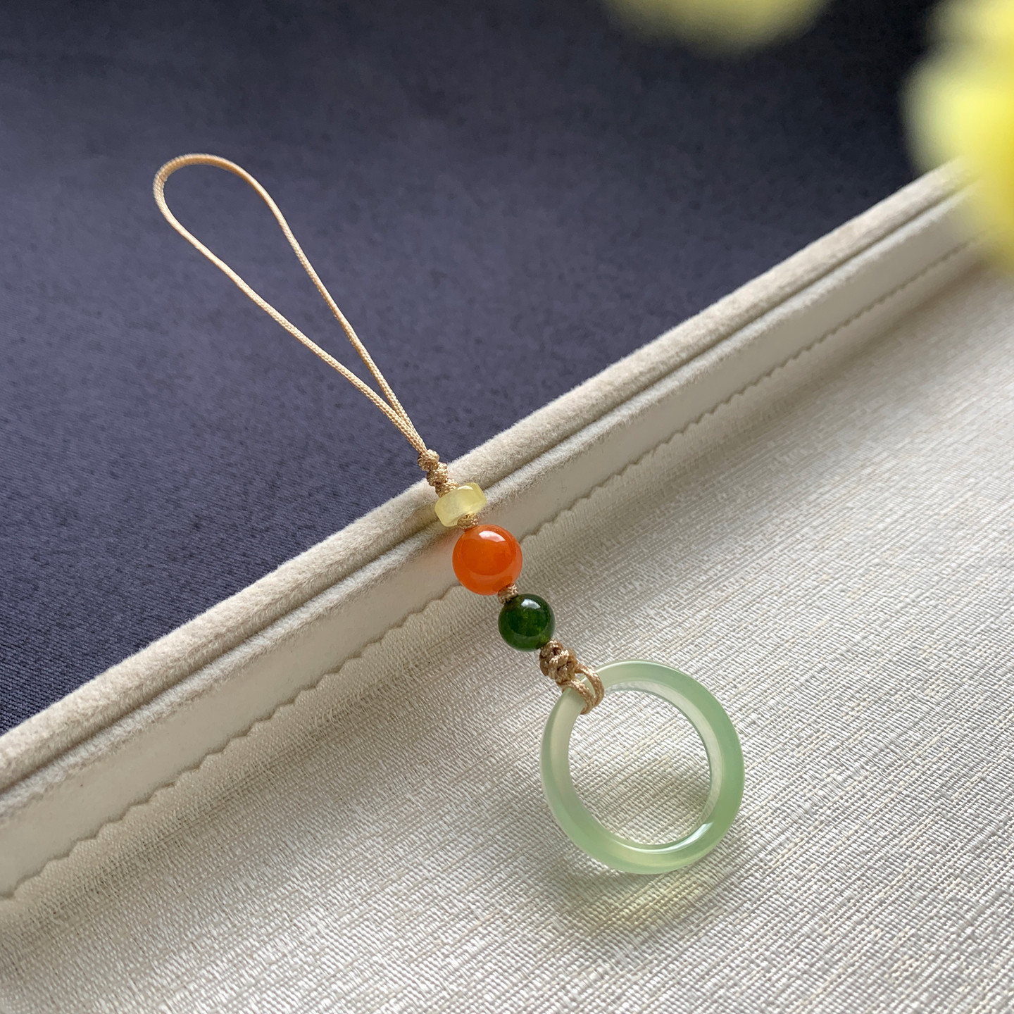 📚 原创金丝玉桃花酿玉石指环手机链挂件水墨玉髓玛瑙戒指包挂钥匙扣
