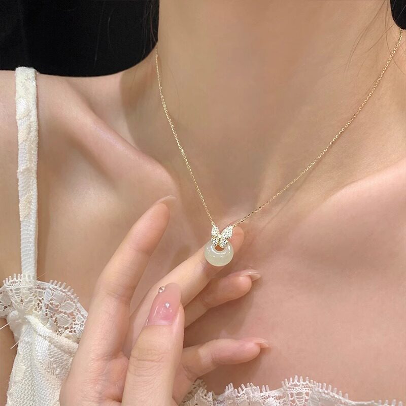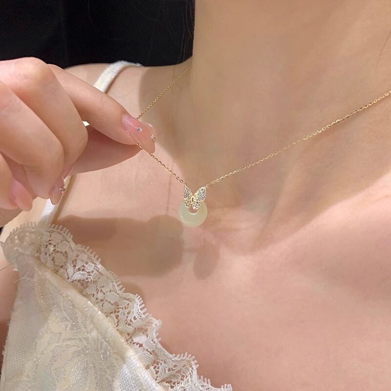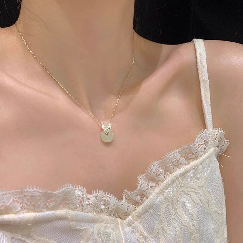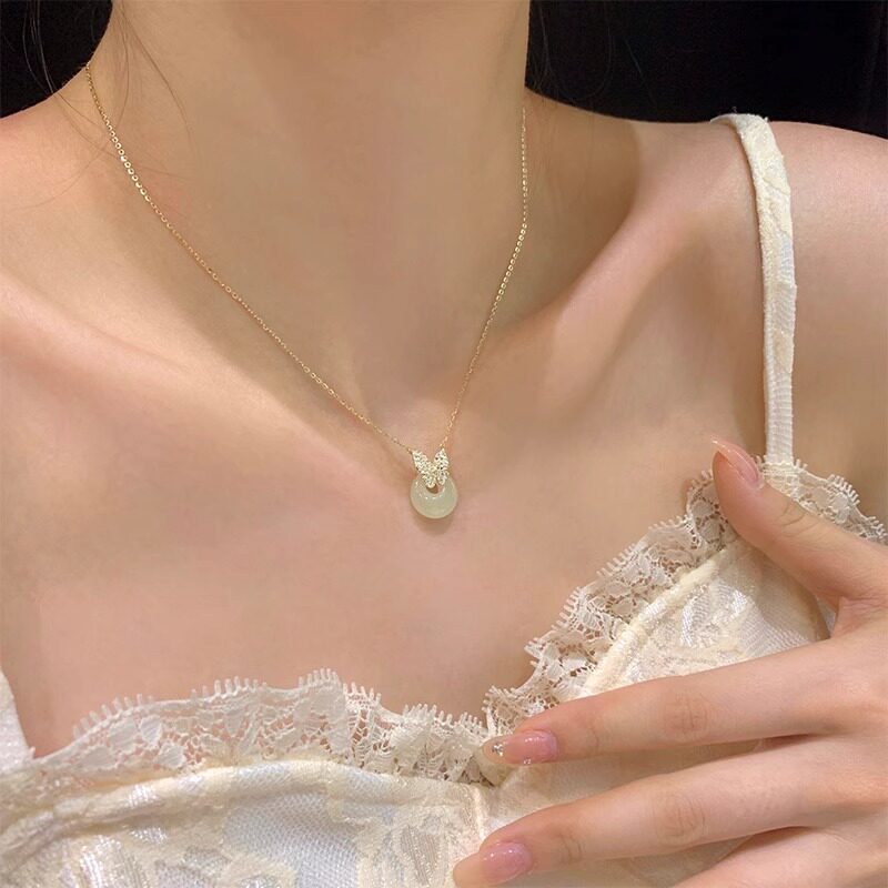📚 平安扣项链和田玉锁骨链纯银新中式国风项链小众轻奢女生生日礼物