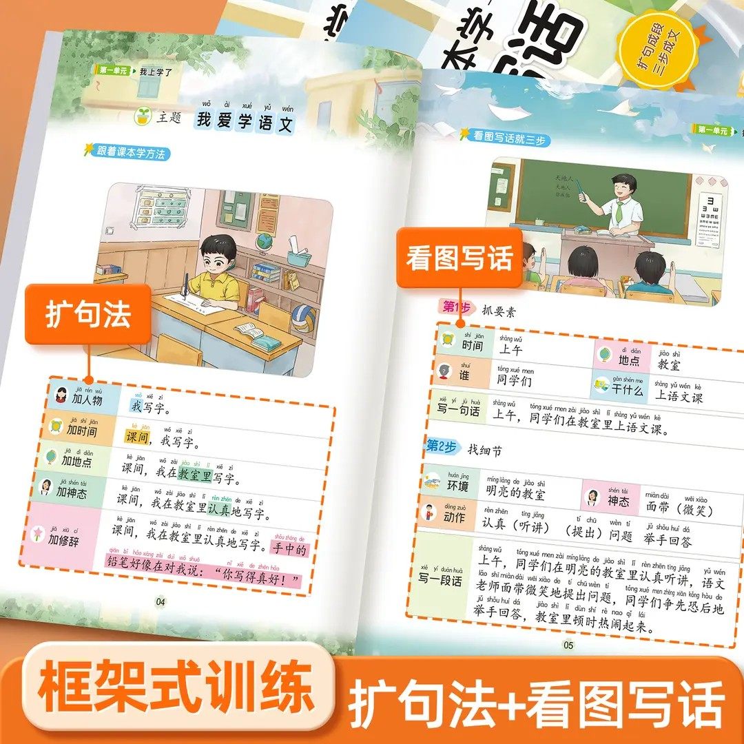 🎉标题:小学作文入门,看图说话新体验——人教版一年级、二年级同步训练