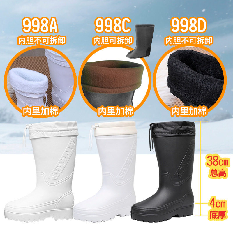 📚 冬季钓鱼保暖鞋加绒一体泡沫保暖防水雨鞋男款长筒加厚棉雨靴防滑