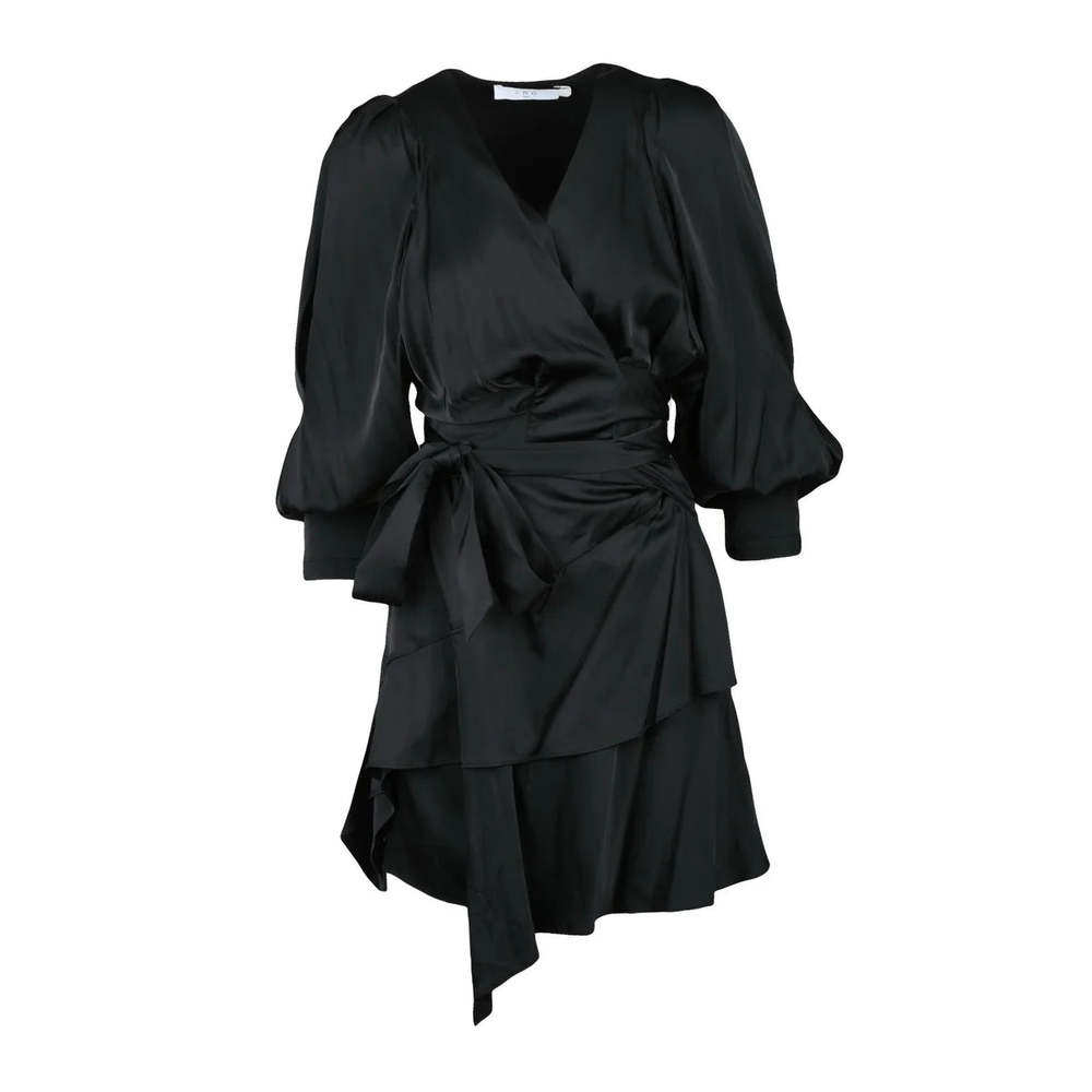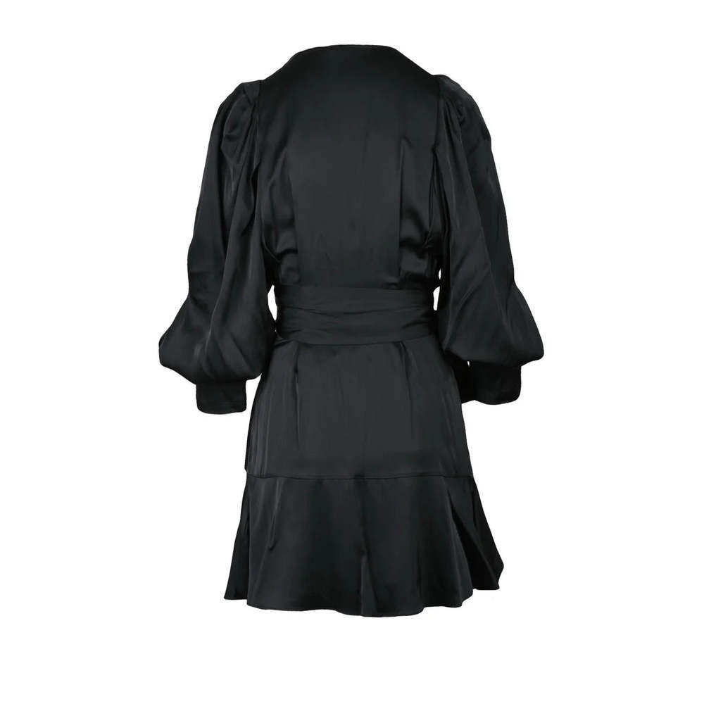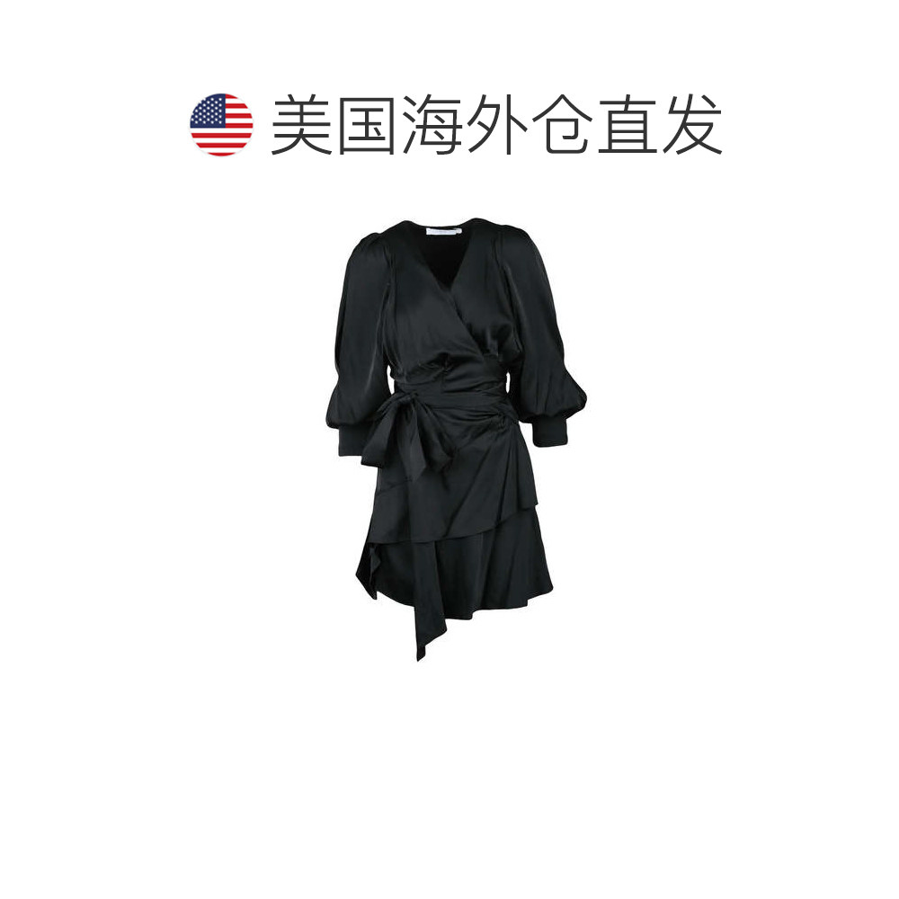 📚 自营iroWrap-Around Black Satin Dress - black 美国奥莱直发