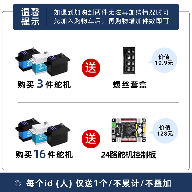 19¥ CZ356 4asb5hM1p10¥ https://m.tb.cn/h.iKDY8od 众灵PWM舵机数字舵机总线串行大扭力舵机270航模机器人控制器20kg --------------------- 【原售价】30元 【现售价】25元。