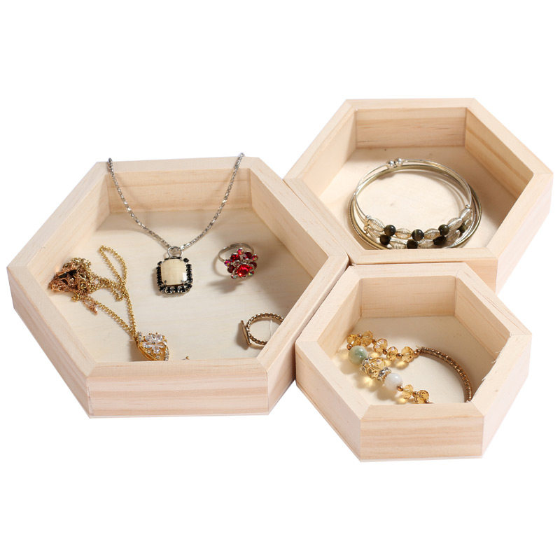 📚 六角形饰品展示托盘项链菩提耳钉戒指珠宝饰品收纳盒子创意实木