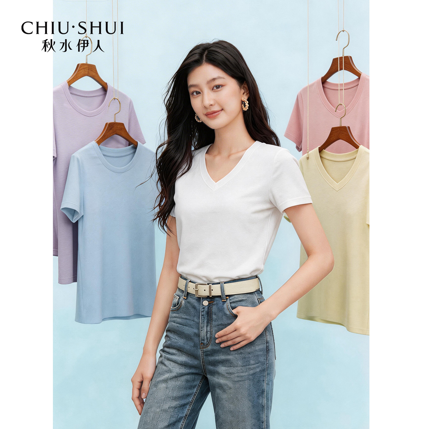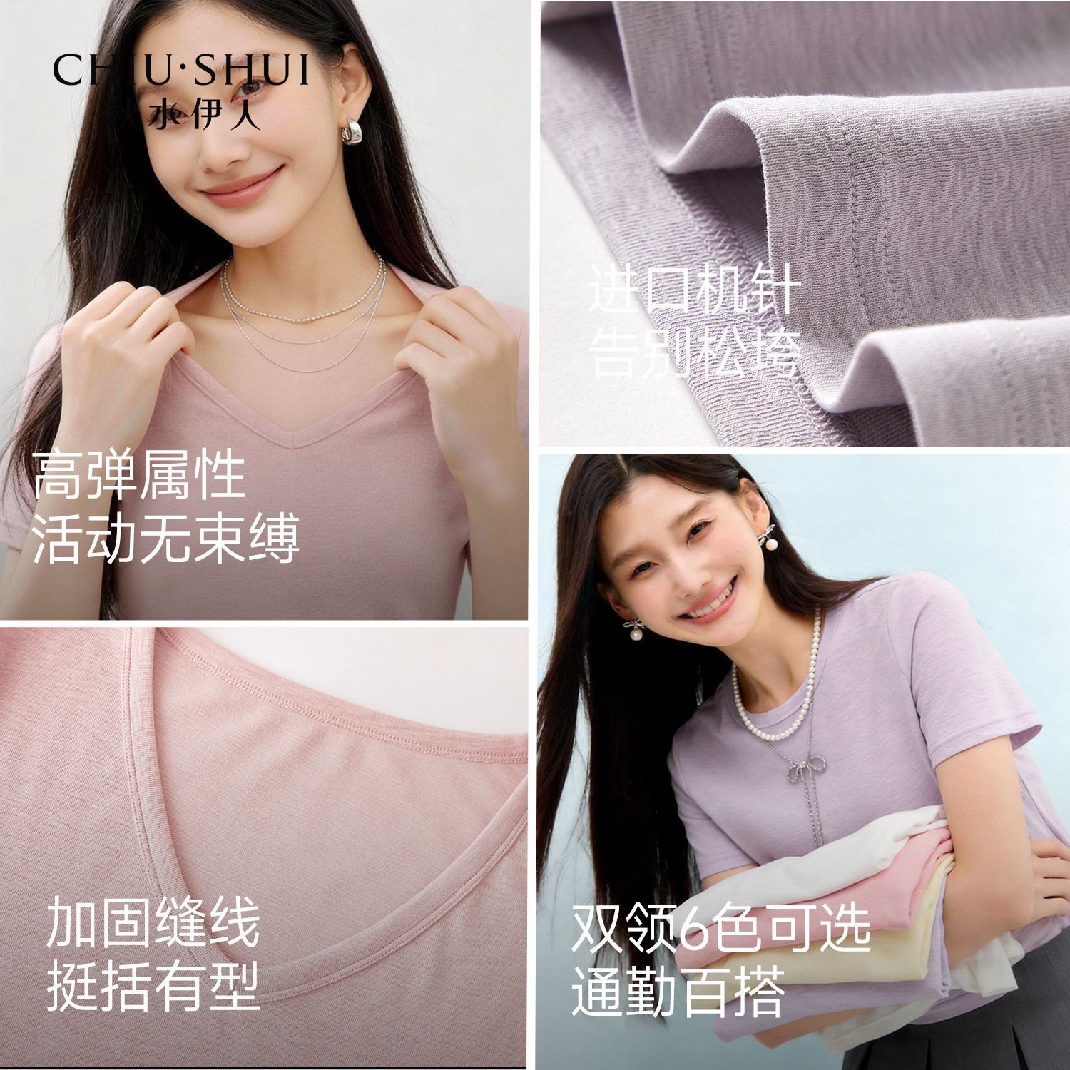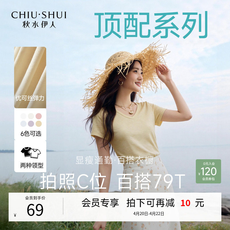 📚 【优可丝】秋水伊人百搭v领短袖女T恤2026夏季新款修身打底衫上衣