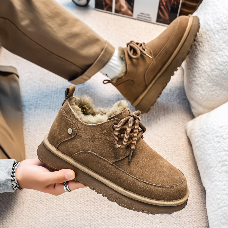 📚 东北大棉鞋男士皮毛一体雪地靴冬季加绒加厚厚底增高情侣严寒短靴