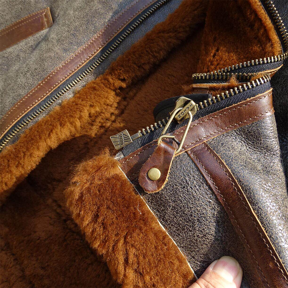 📚 原生态羊皮毛一体龟裂泰迪棕美式复古保暖J188B6B3真皮皮衣