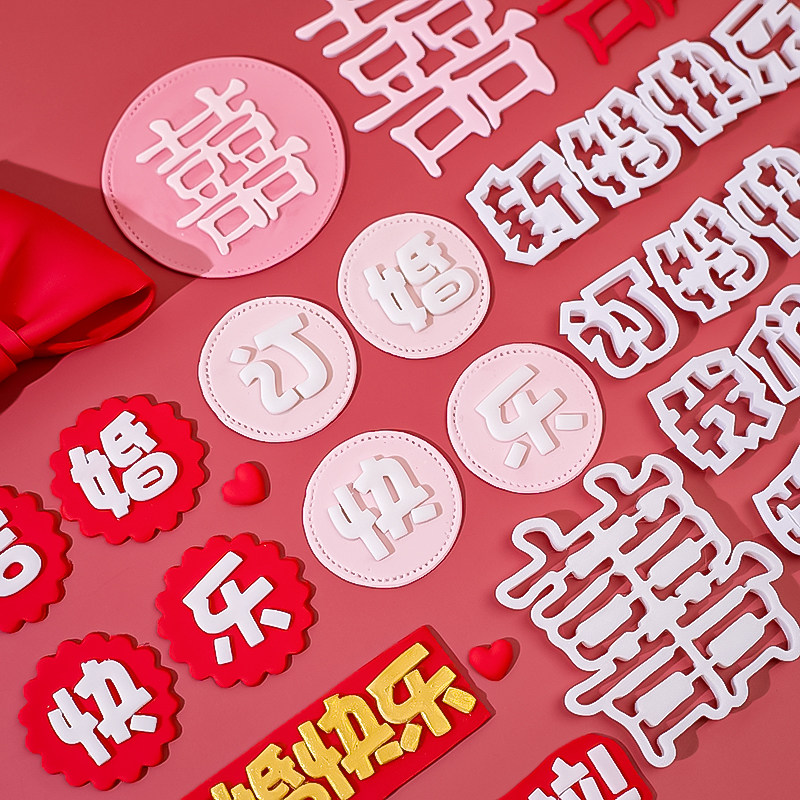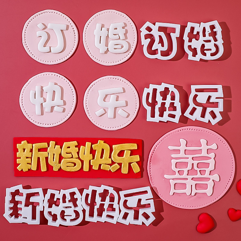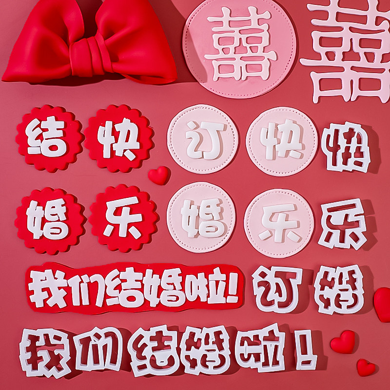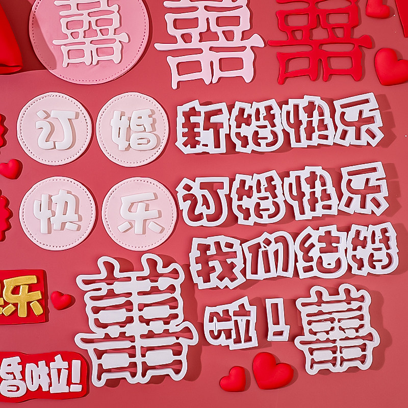 📚 我们结婚啦!翻糖刻字切模新订结婚快乐喜囍蛋糕装饰切模烘焙模具
