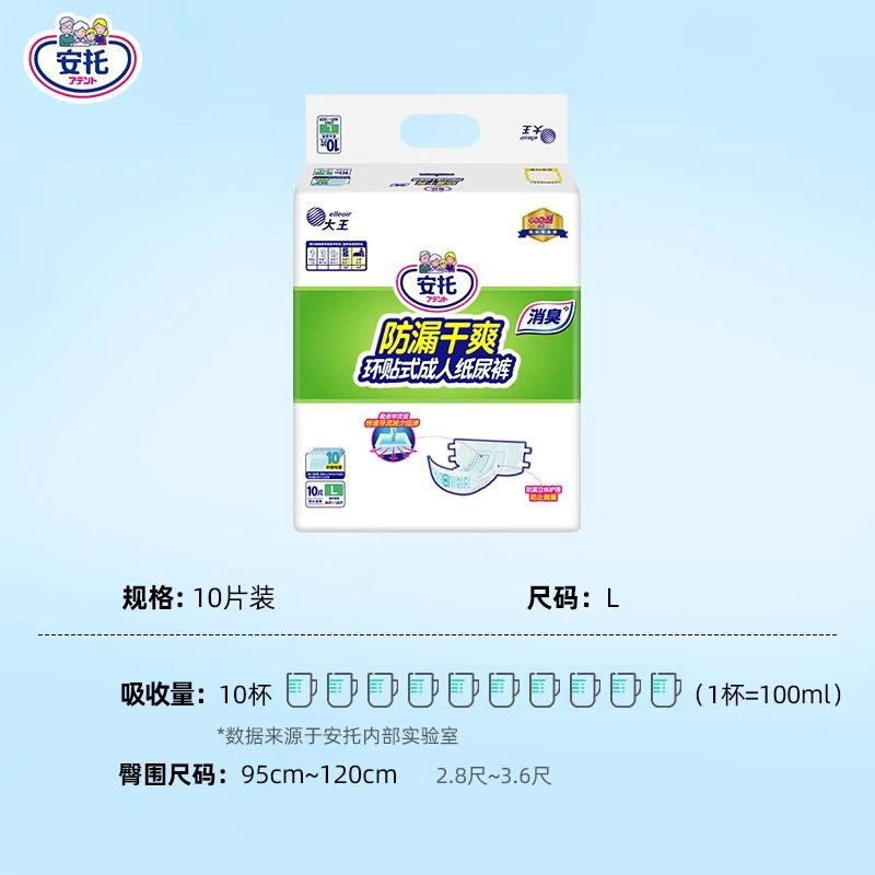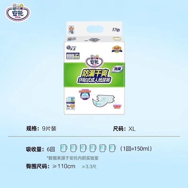 📚 大王安托成人纸尿裤环贴式尿不湿老人纸尿片防漏干爽整箱L/XL码