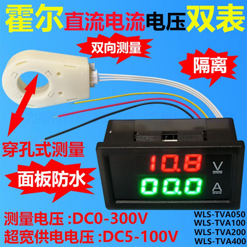 📚 霍尔电流电压表 双显 隔离 数字 LED数显 直流防反接保护面板防水