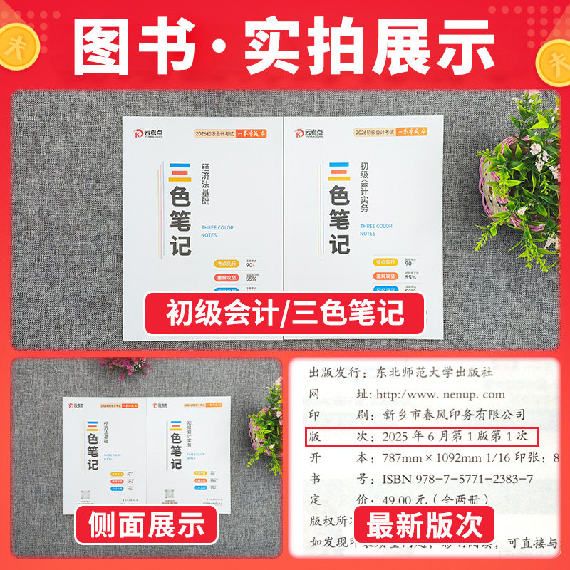 📚 2026大纲云考点初级会计教材三色笔记纸质版资料实务经济法基础课真题库