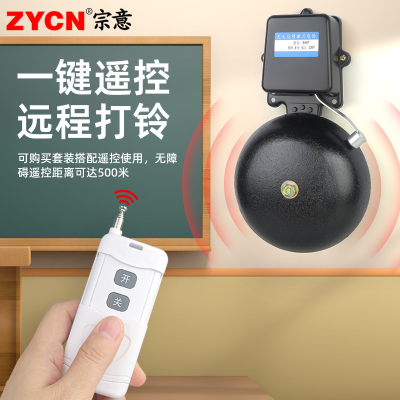 📚 铸铁电铃220V自动打铃器套装工厂上下班学校高音量无线遥控电铃