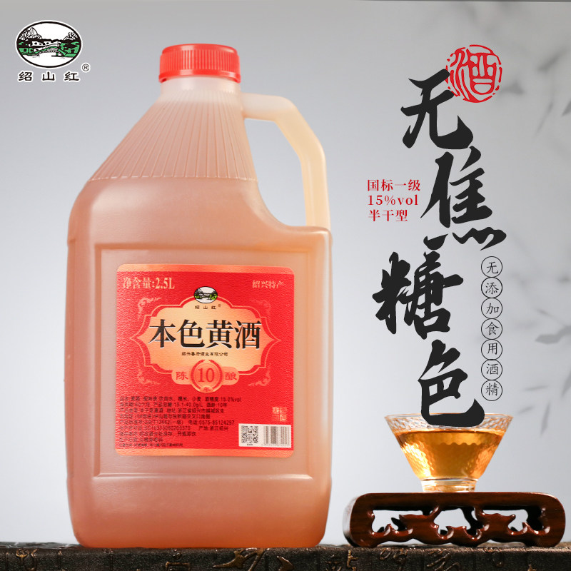 📚 绍兴老黄酒十年陈酿不含焦糖色本色原酒2.5L桶装半干型加饭花雕酒