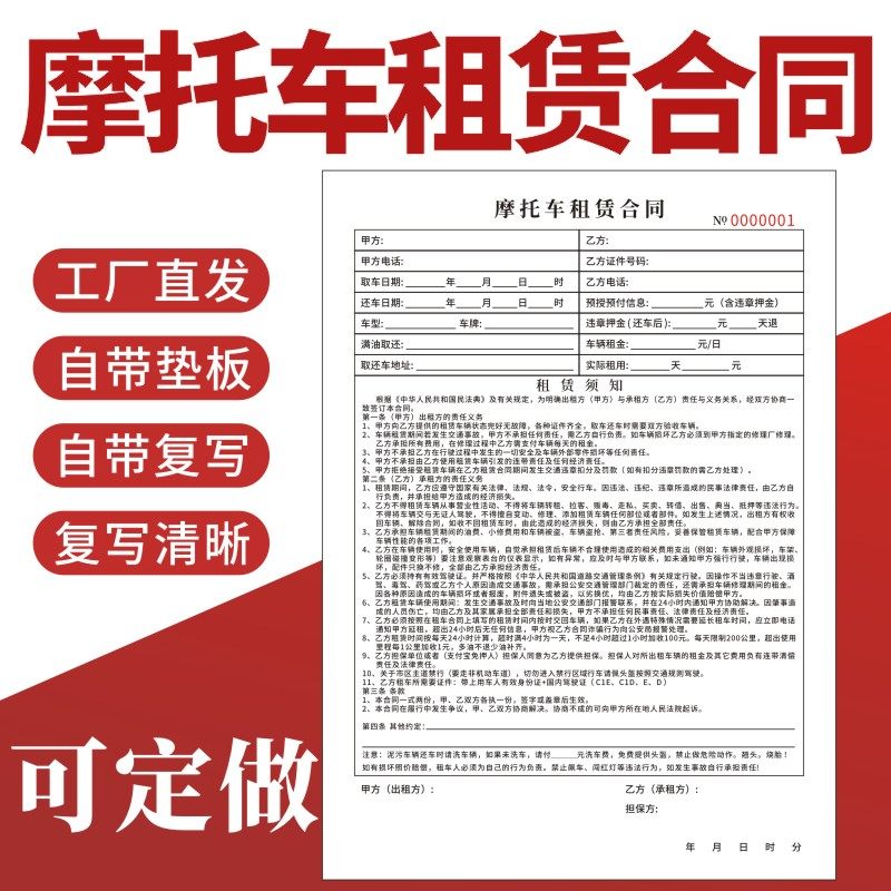 📚 摩托车租赁合同A4二联通用现货单据定制一本包邮车行协议出租收费收据电动车新能源租车合同无碳复写收据定做