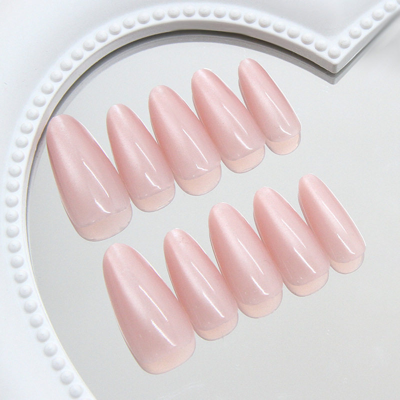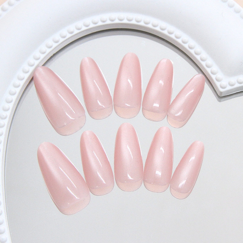 📚 夏日温柔简约粉色猫眼中长款杏仁甲欧美ins风可拆卸美甲片30片