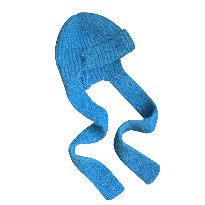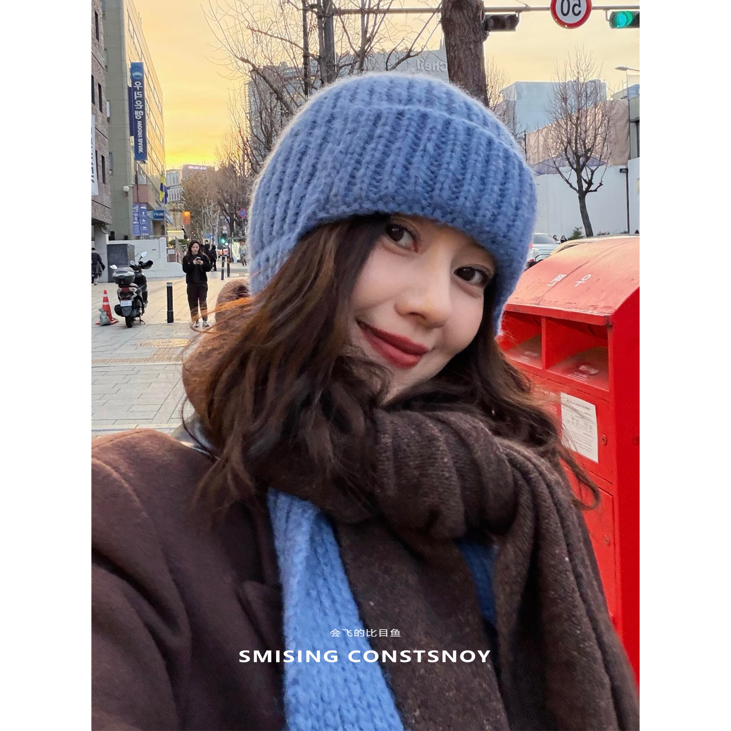📚 高圆圆同款蓝色高品质针织帽女秋冬季2026新款防寒保暖百搭包头帽