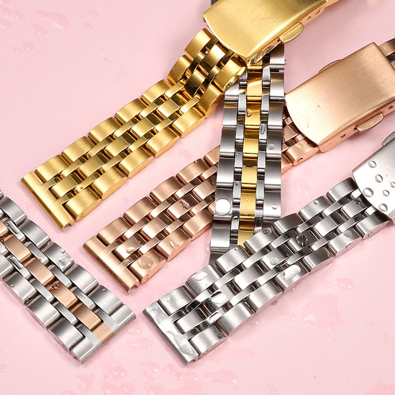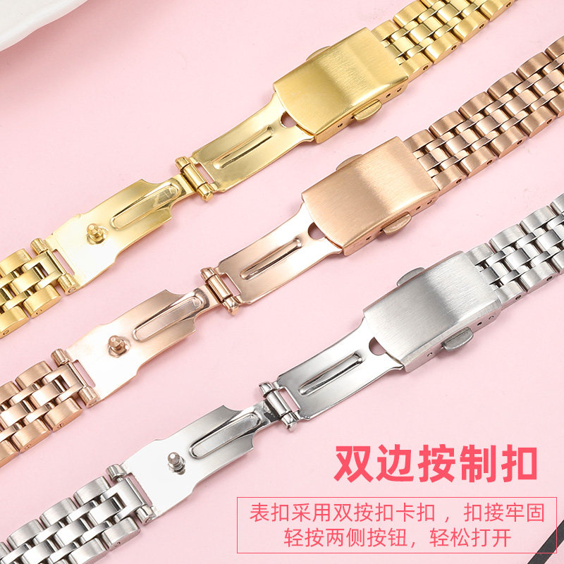 📚 适配浪琴名匠手表带钢带男女嘉岚瑰丽系列玫瑰金色不锈钢表链14mm