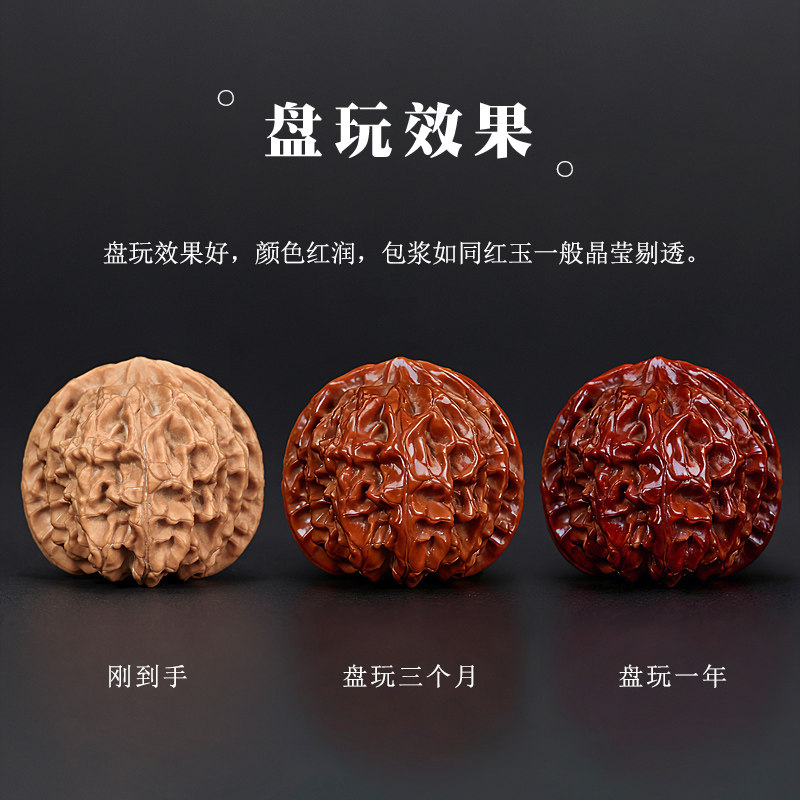 📚 全品无修文玩核桃苹果园收藏级天然精品狮子头十字金钱底梅花纹配