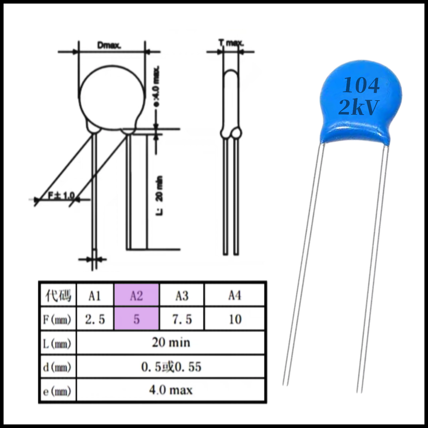 📚 高压瓷片电容器2000V2KV 脚距5mm 容量100PF220PF330PF2200PF10NF