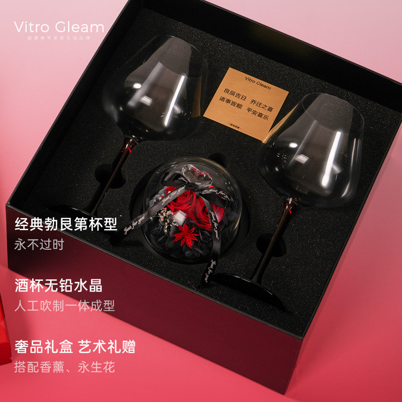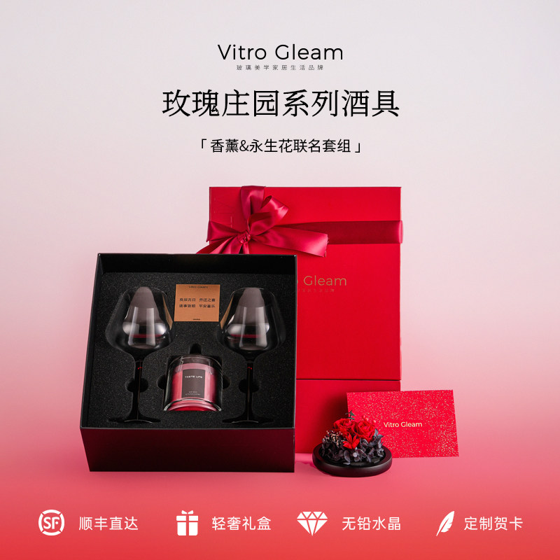 📚 [订婚礼物]VitroGleam红酒杯「玫瑰庄园」香薰永生花新婚乔迁