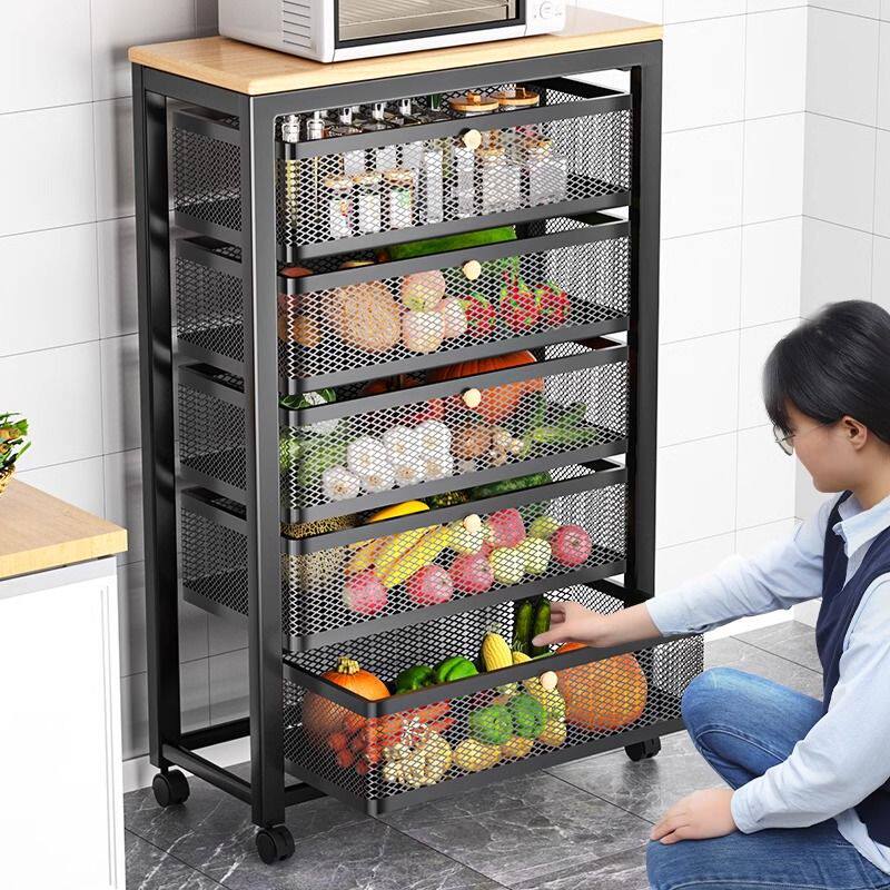 📚 厨房菜篮子置物架家用移动落地式多层果蔬收纳筐多功能微波炉架子