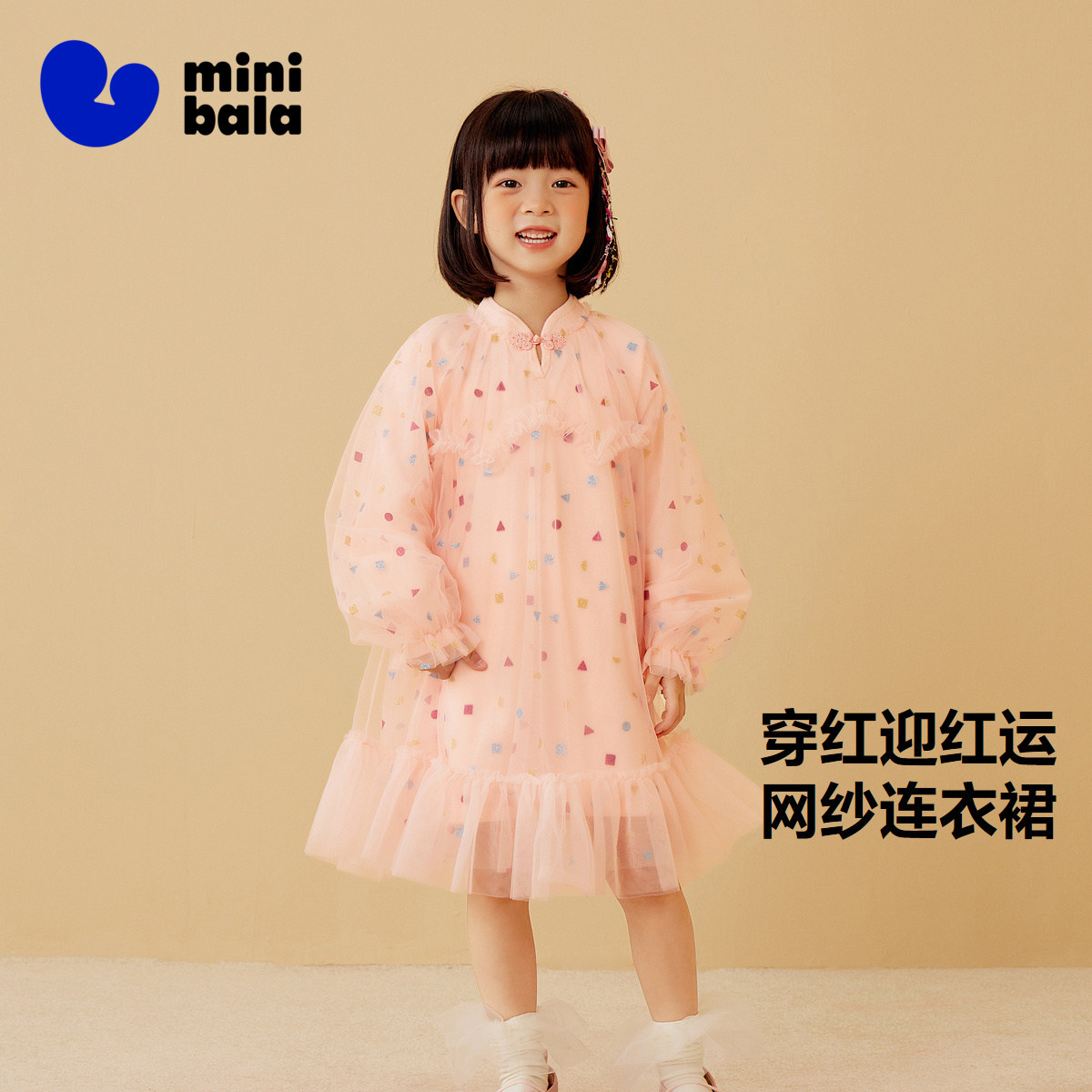 📚 迷你巴拉巴拉女童连衣裙宝宝新年国风裙子公主裙红色拜年服秋冬装