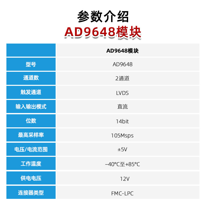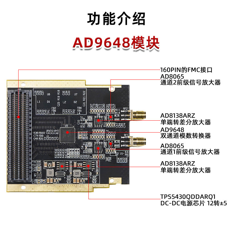 📚 小梅哥105M高速ADC模块14位双通道LVDS ADI AD9648 FMC-LPC