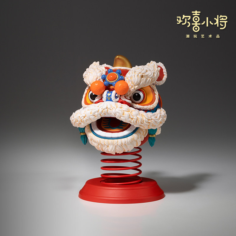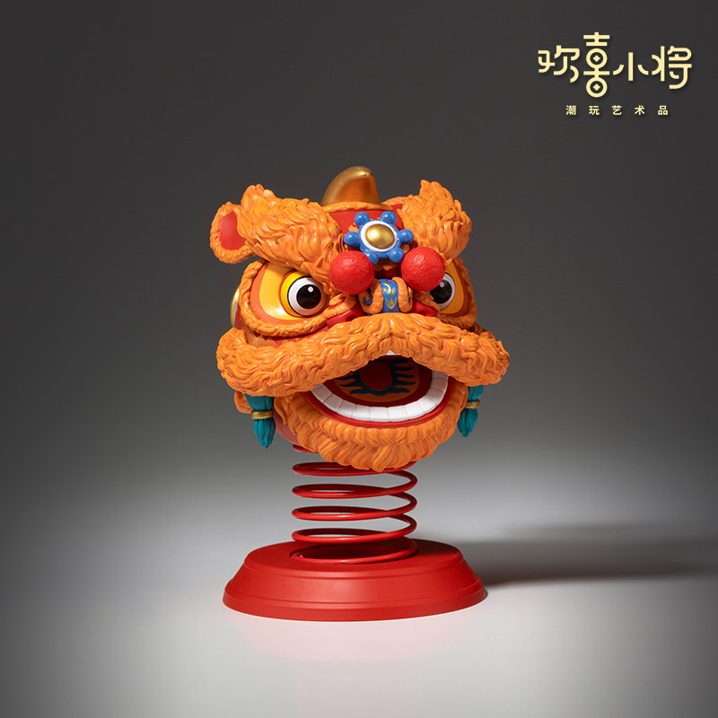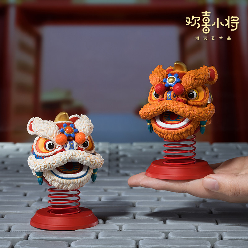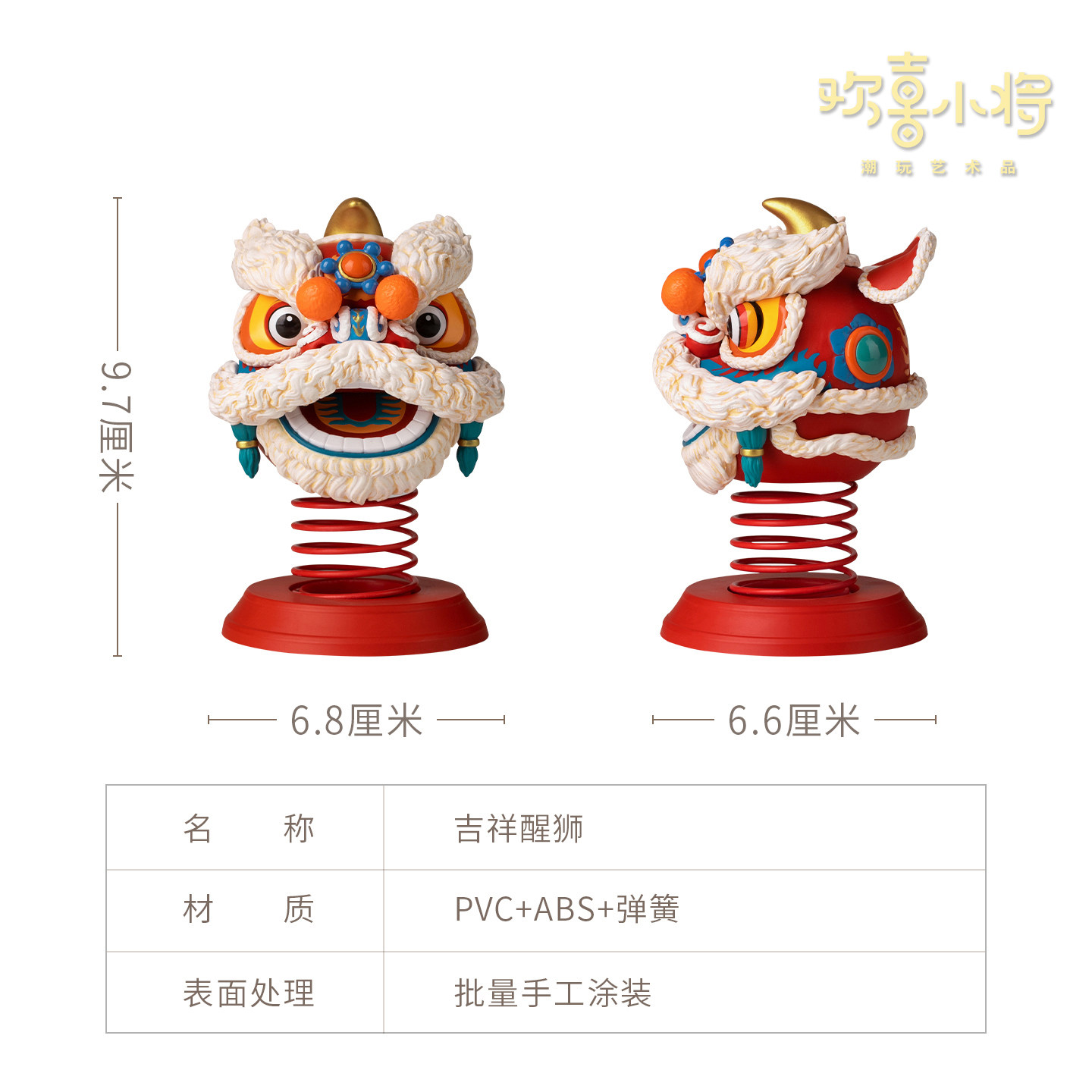 📚 铜师傅欢喜小将《吉祥如意醒狮 》国潮小醒狮 弹簧摇头解压车摆件