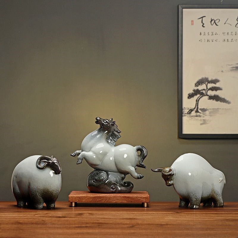 📚 陶瓷生肖牛马羊猪摆件招财玄关办公室客厅书房博古架装饰开业礼品