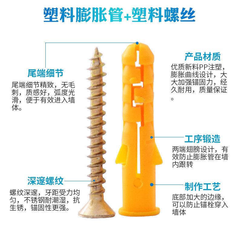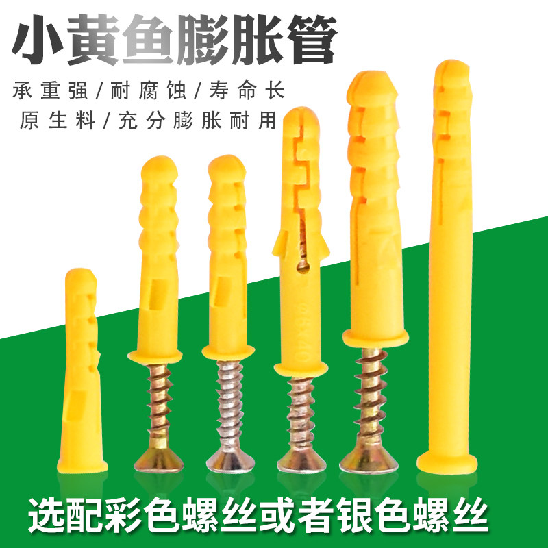 📚 小黄鱼塑料膨胀管加长螺丝固定钉尼龙胶粒胀栓涨塞吊柜自攻螺丝钉