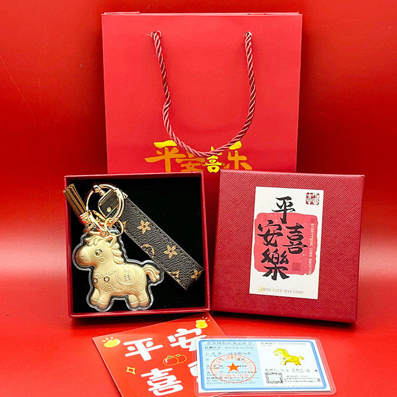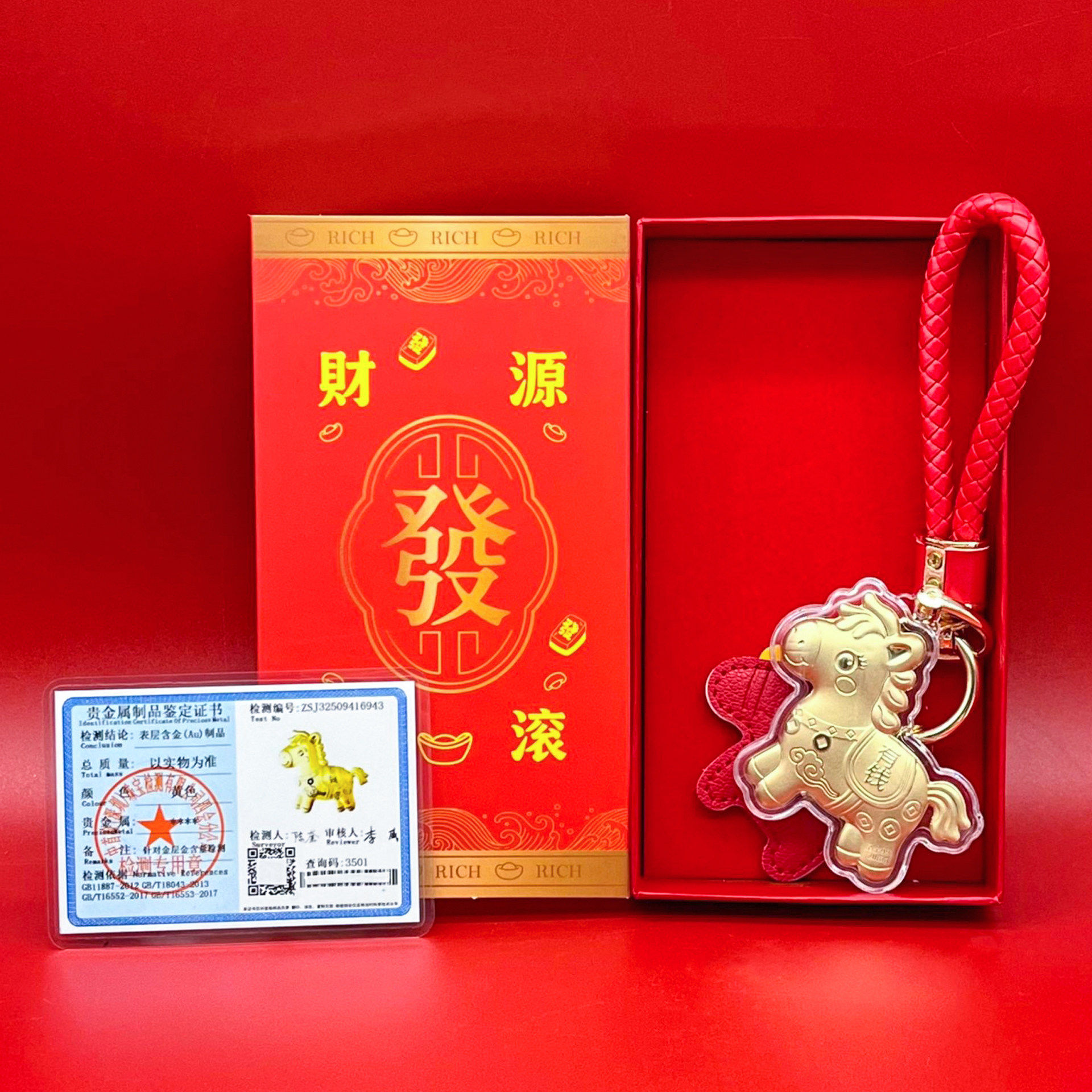 📚 水贝黄金马上有钱钥匙扣足金999小马包包挂件送女友礼物新年礼品