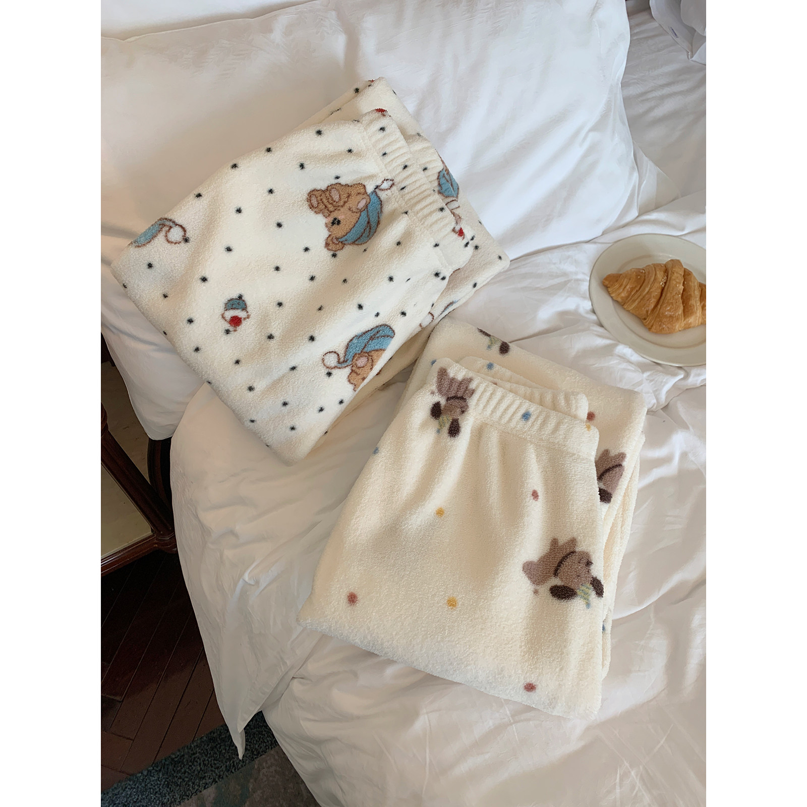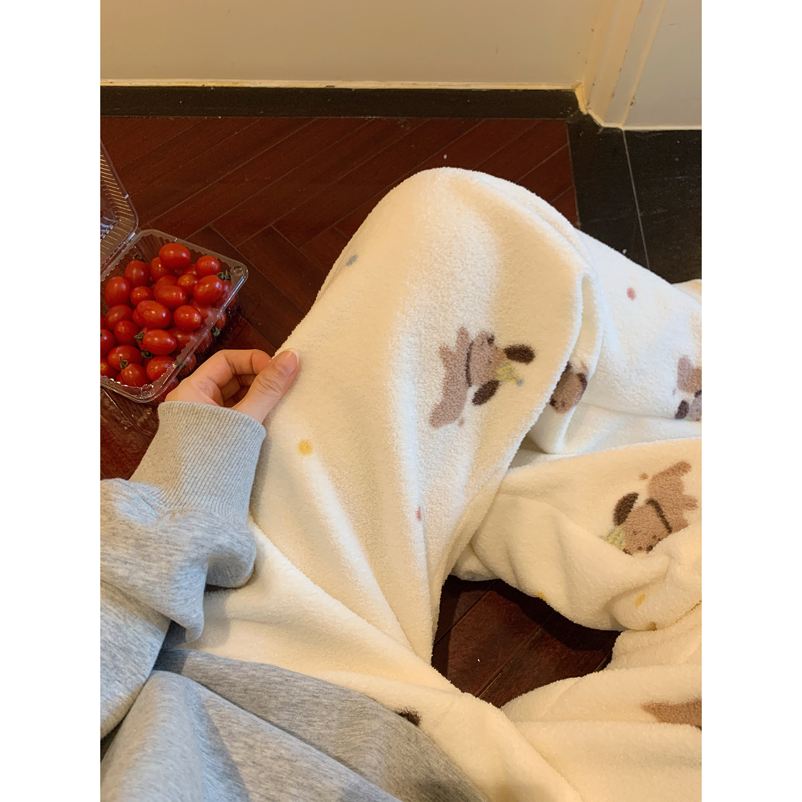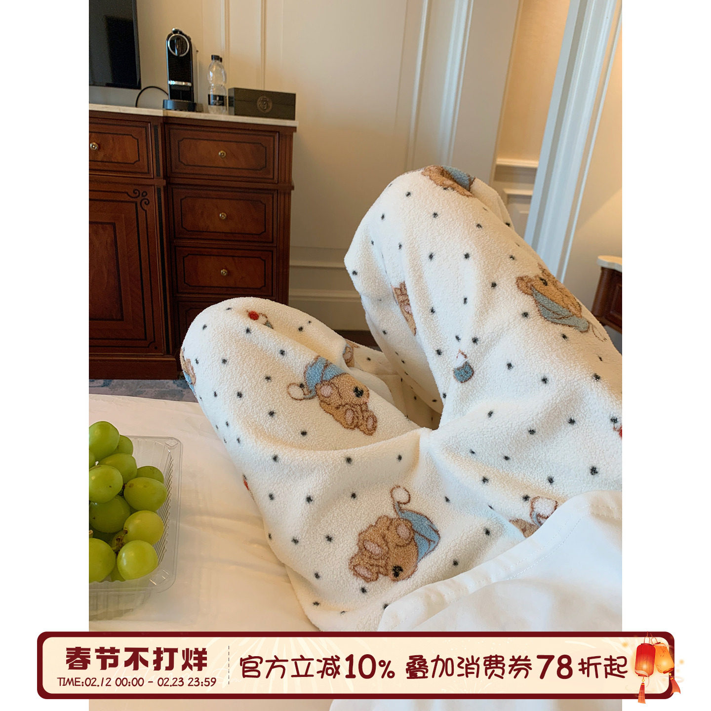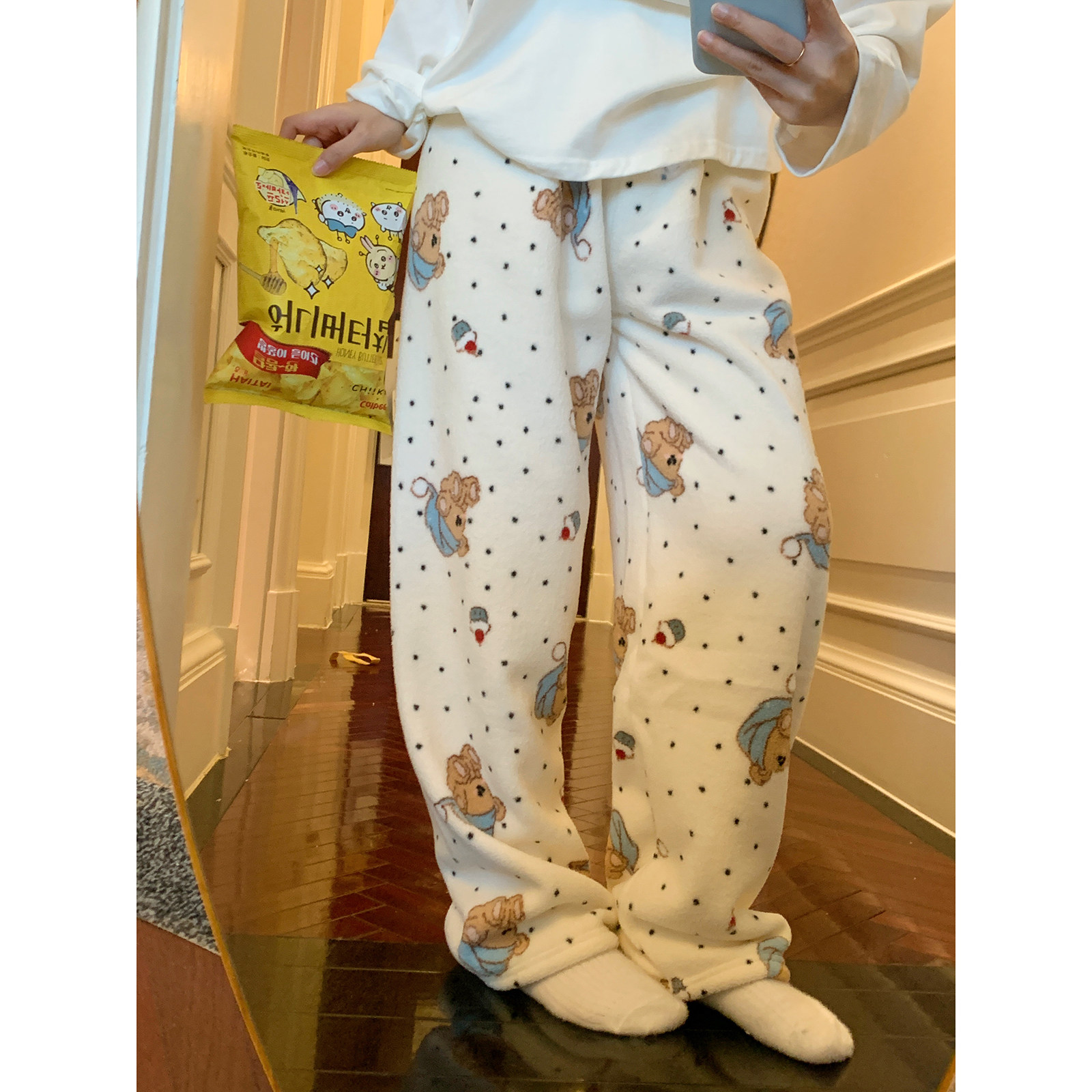 📚 馨帮帮Homedress 卡通雪粒绒睡裤女秋冬加厚保暖宽松直筒家居长裤