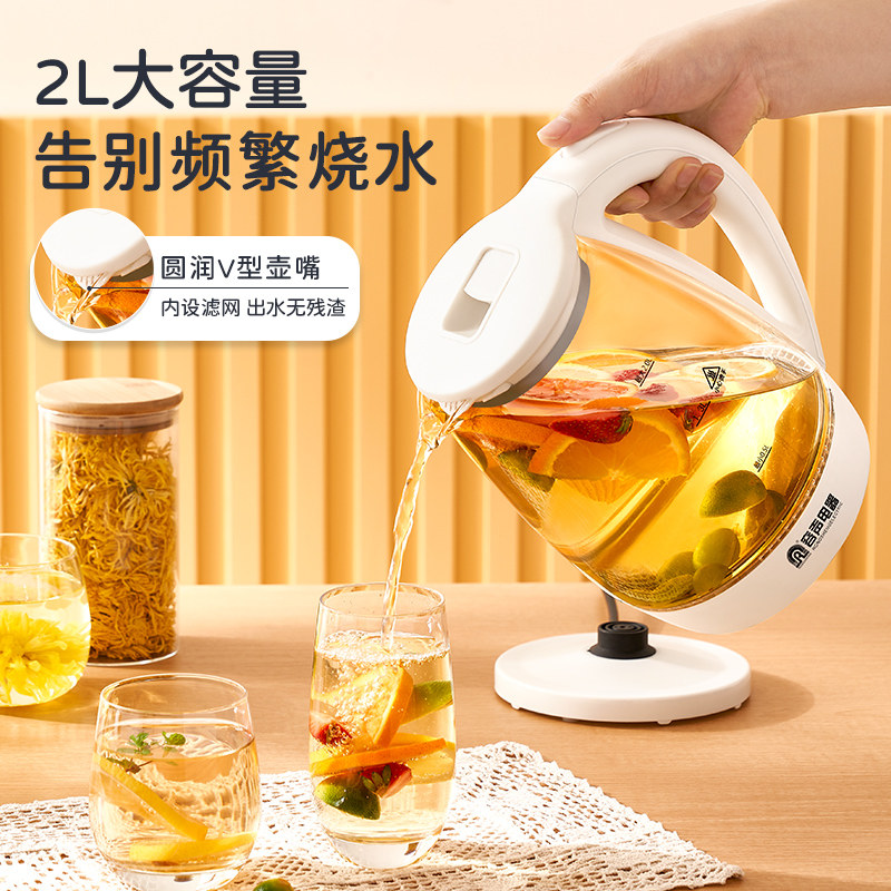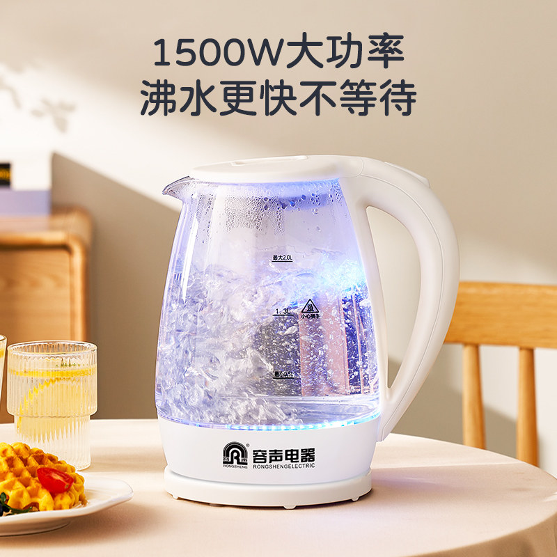 📚 容声玻璃烧水壶家用2L大容量电热水壶蓝光耐高温玻璃养生壶自断电